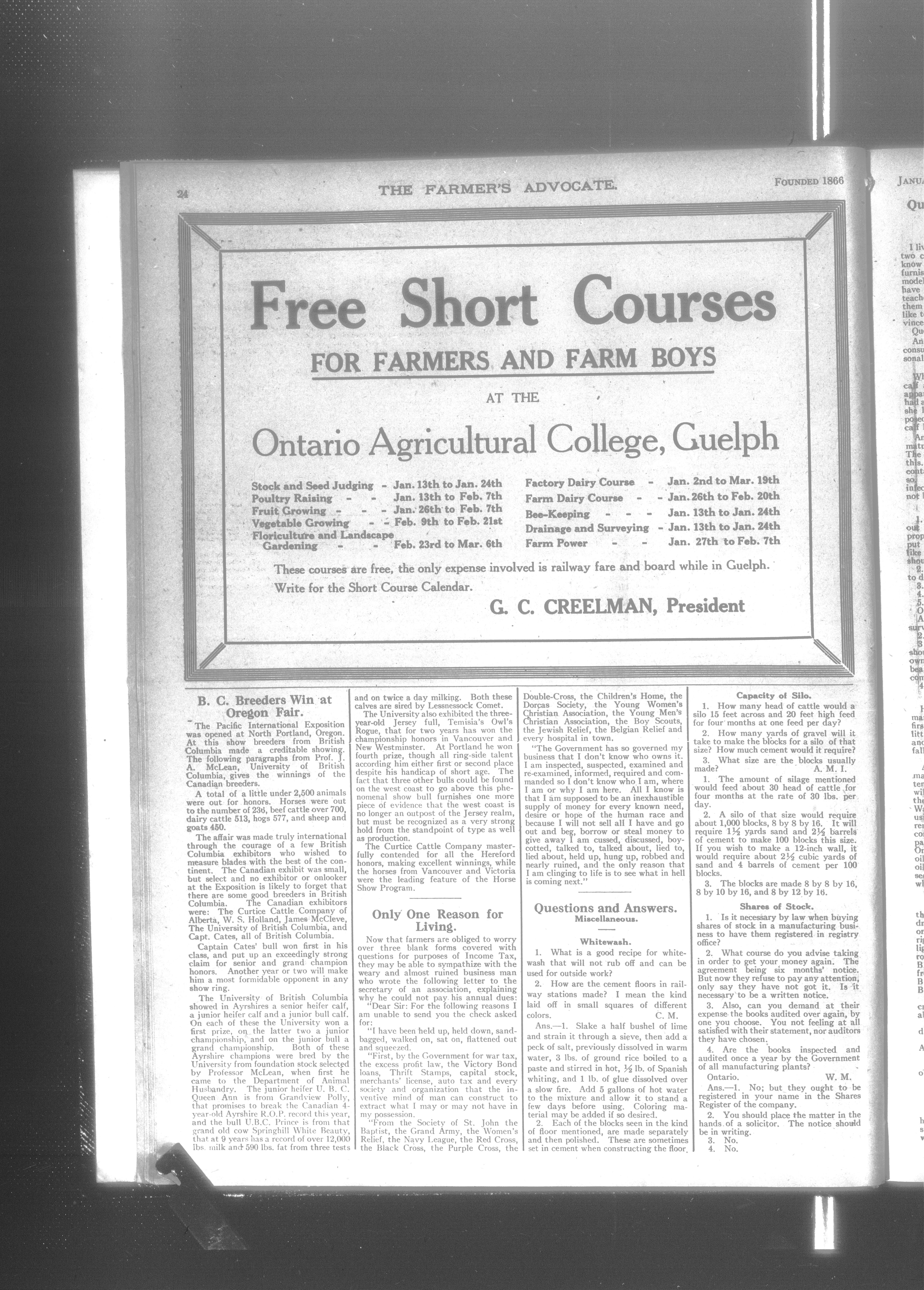 Farmer's Advocate and Home Magazine : Vol. LV, No. 1423 (January 1, 1920)