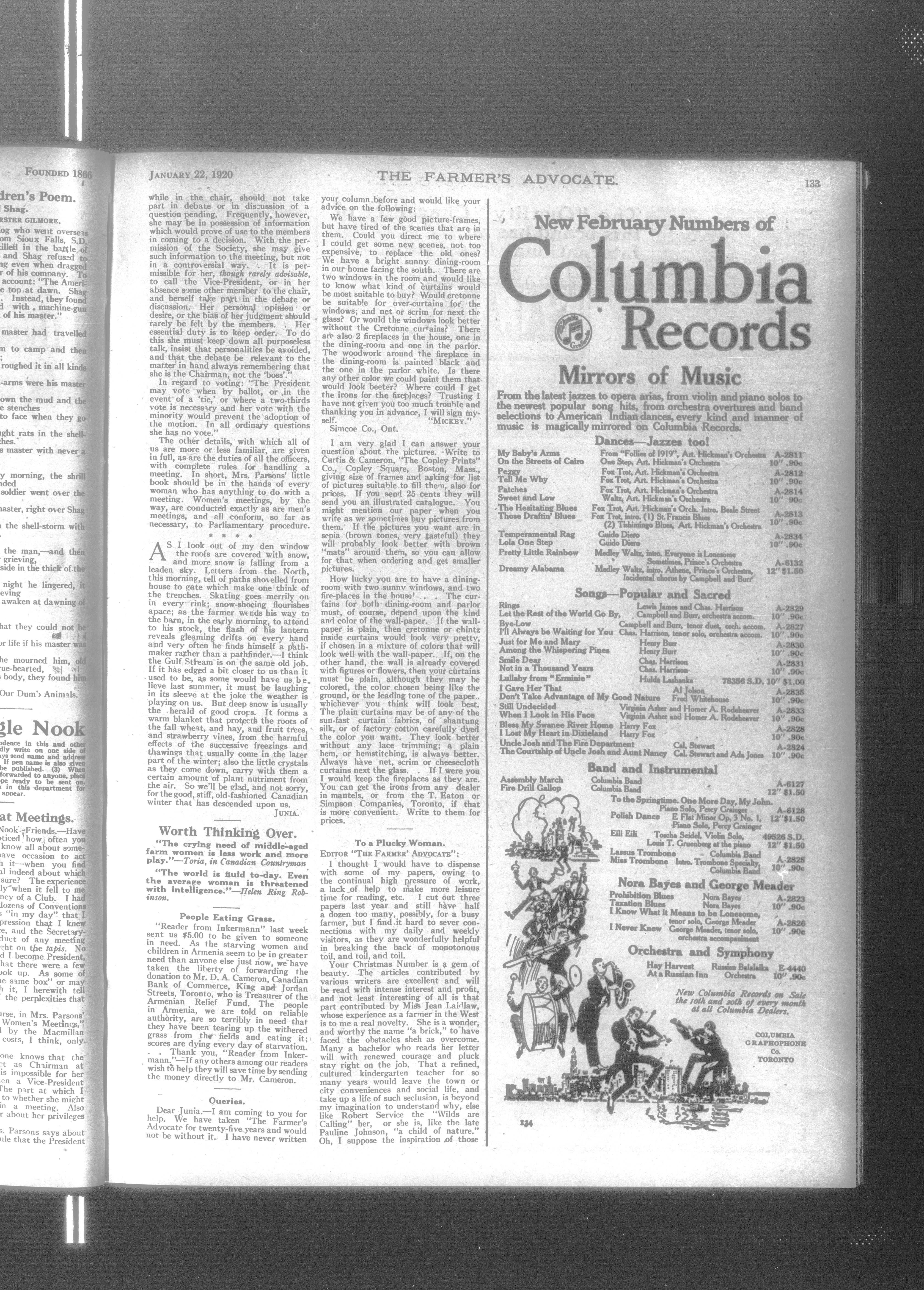 Farmer's Advocate and Home Magazine : Vol. LV, No. 1426 (January 22, 1920)
