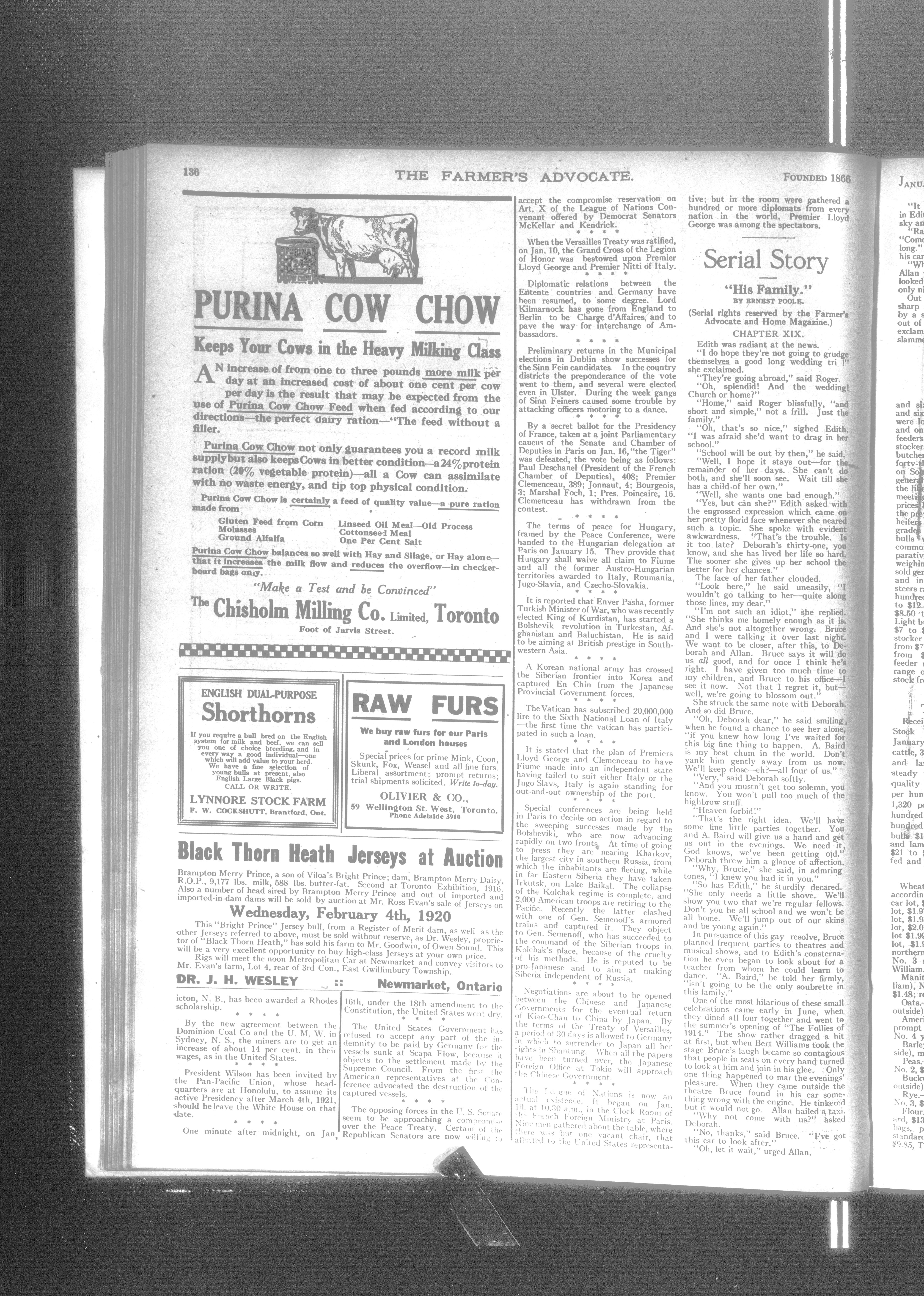 Farmer's Advocate and Home Magazine : Vol. LV, No. 1426 (January 22, 1920)