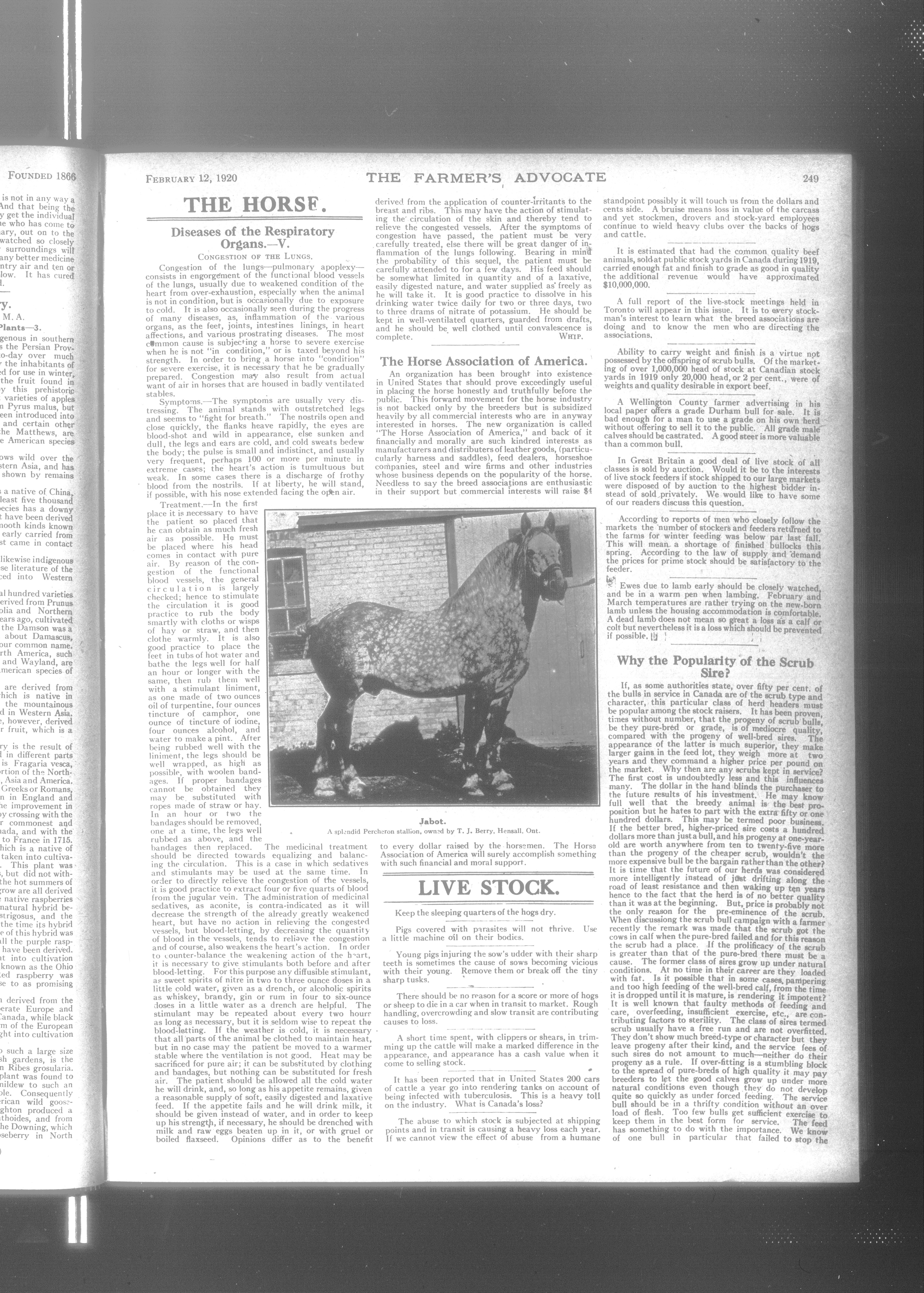 Farmer's Advocate and Home Magazine : Vol. LV, No. 1429 (February 12, 1920)