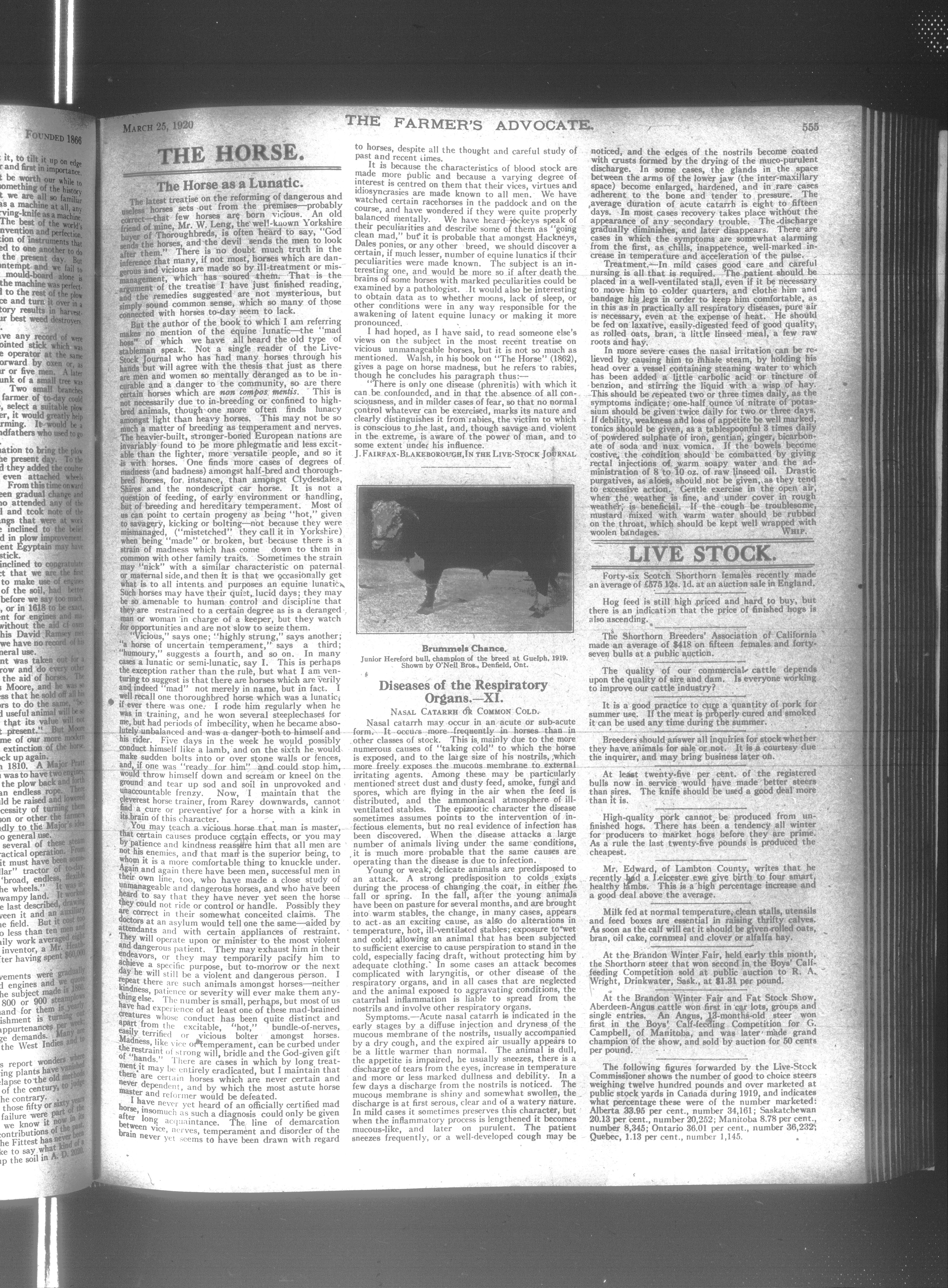 Farmer's Advocate and Home Magazine : Vol. LV, No. 1435 (March 25, 1920)