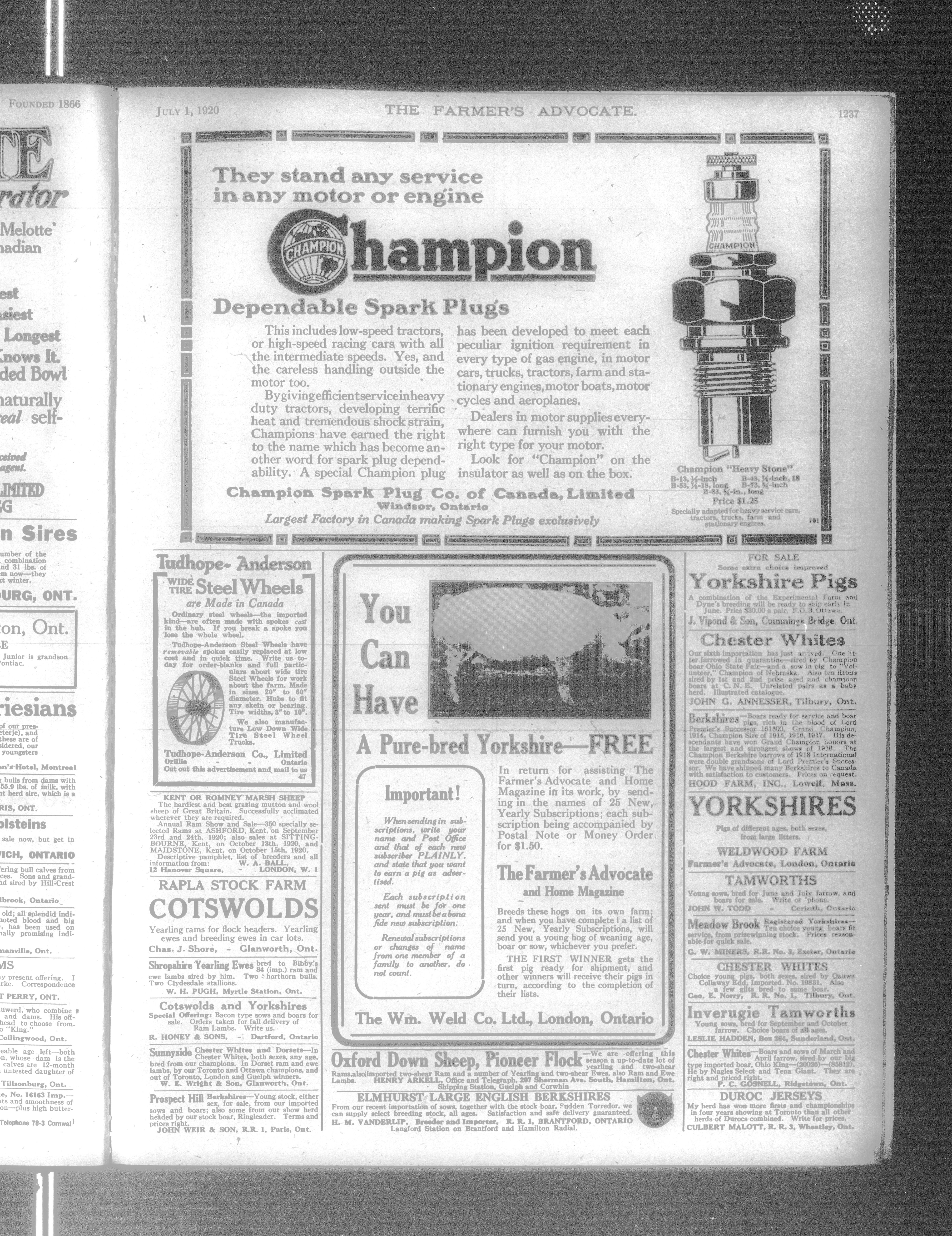 Farmer's Advocate and Home Magazine : Vol. LV, No. 1449 (July 1, 1920)