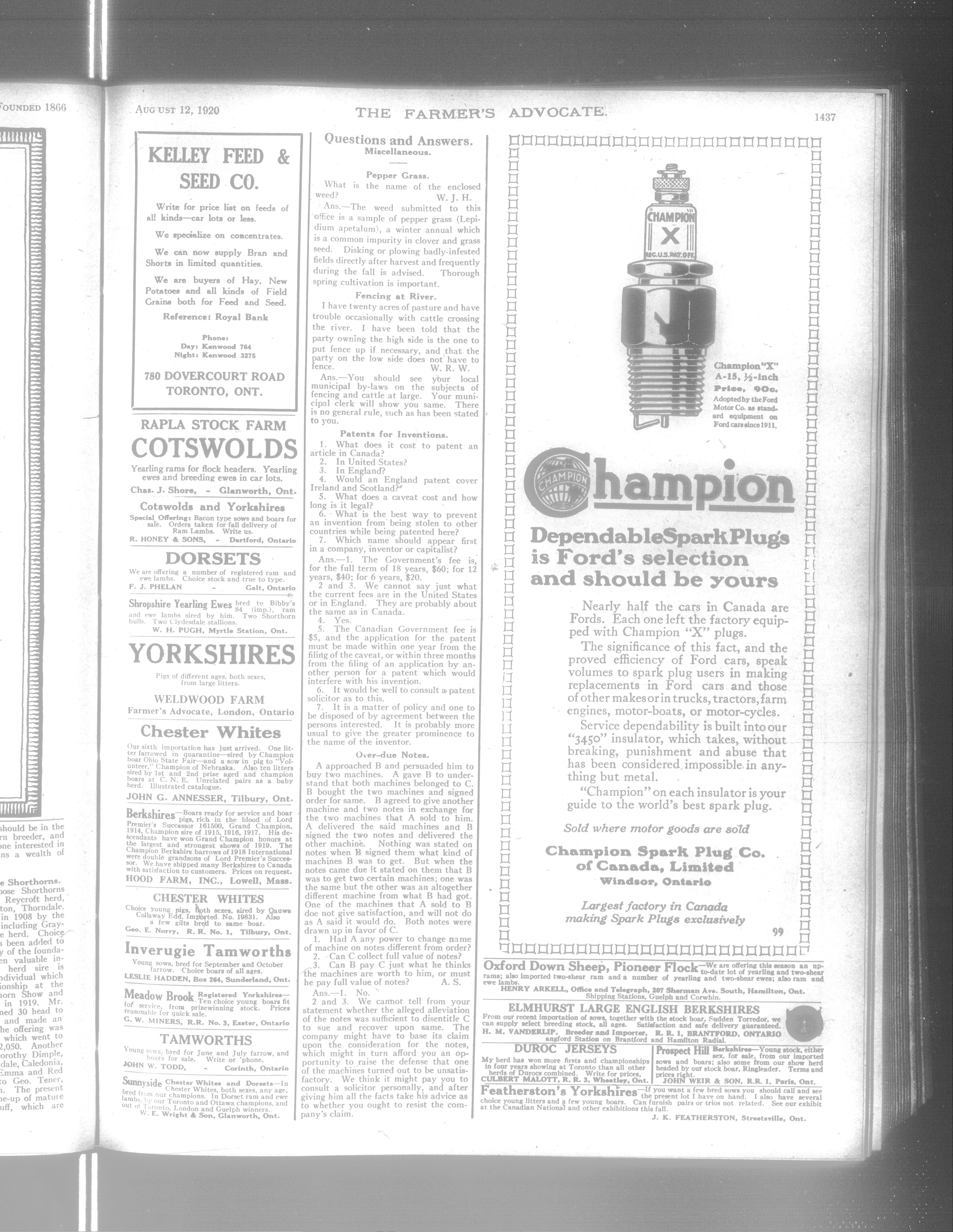 Farmer's Advocate and Home Magazine : Vol. LV, No. 1455 (August 12, 1920)