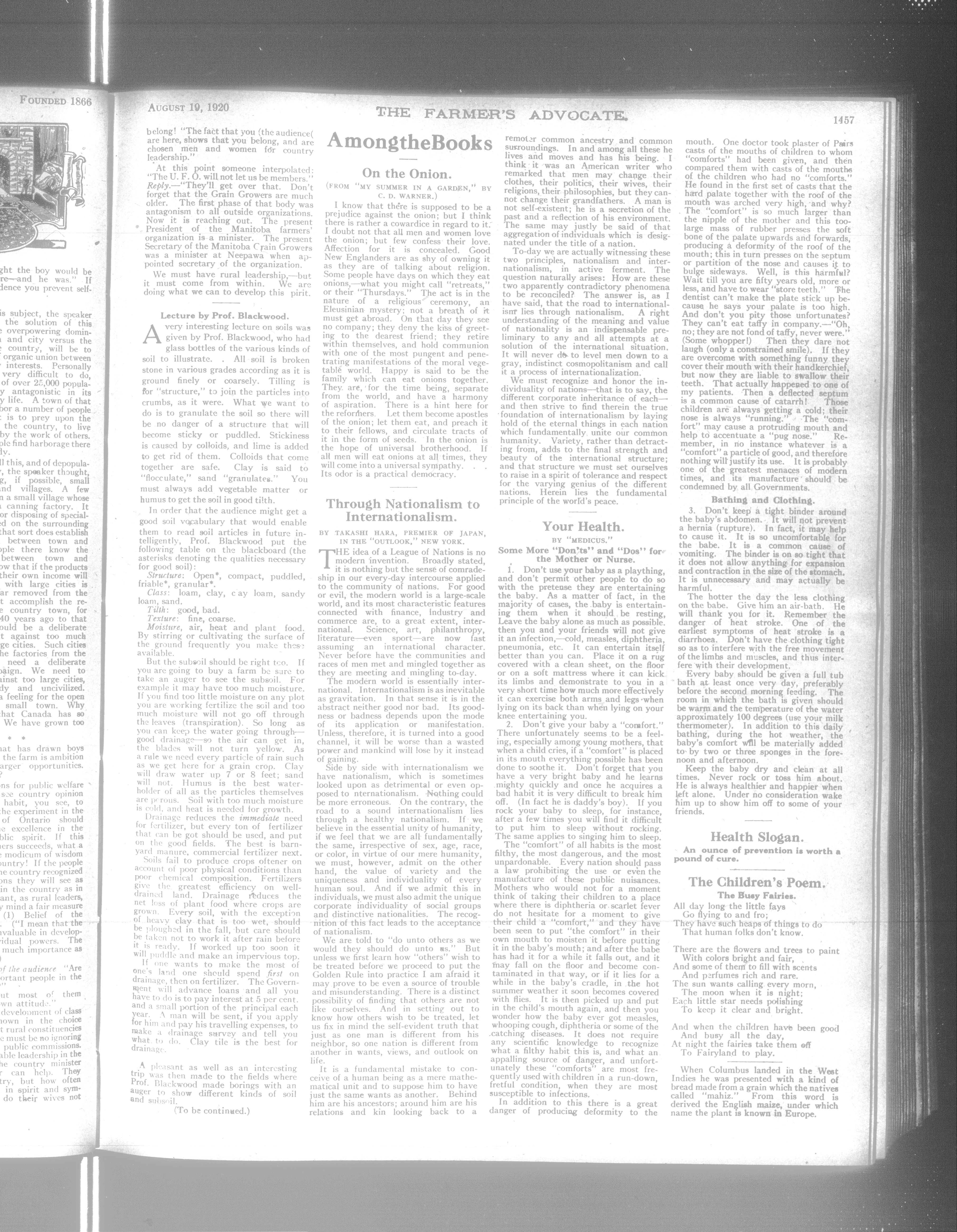 Farmer's Advocate and Home Magazine : Vol. LV, No. 1456 (August 19, 1920)