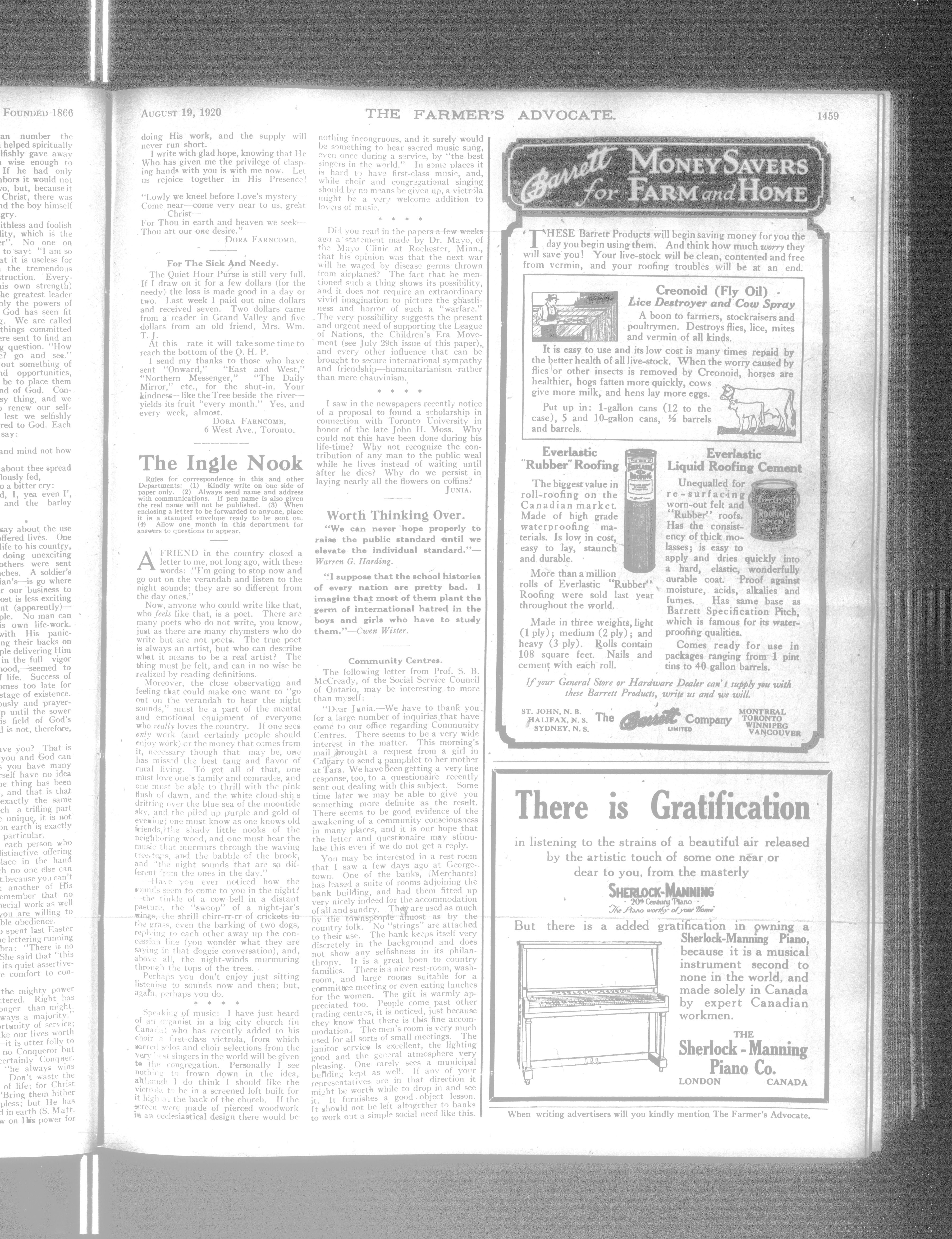 Farmer's Advocate and Home Magazine : Vol. LV, No. 1456 (August 19, 1920)