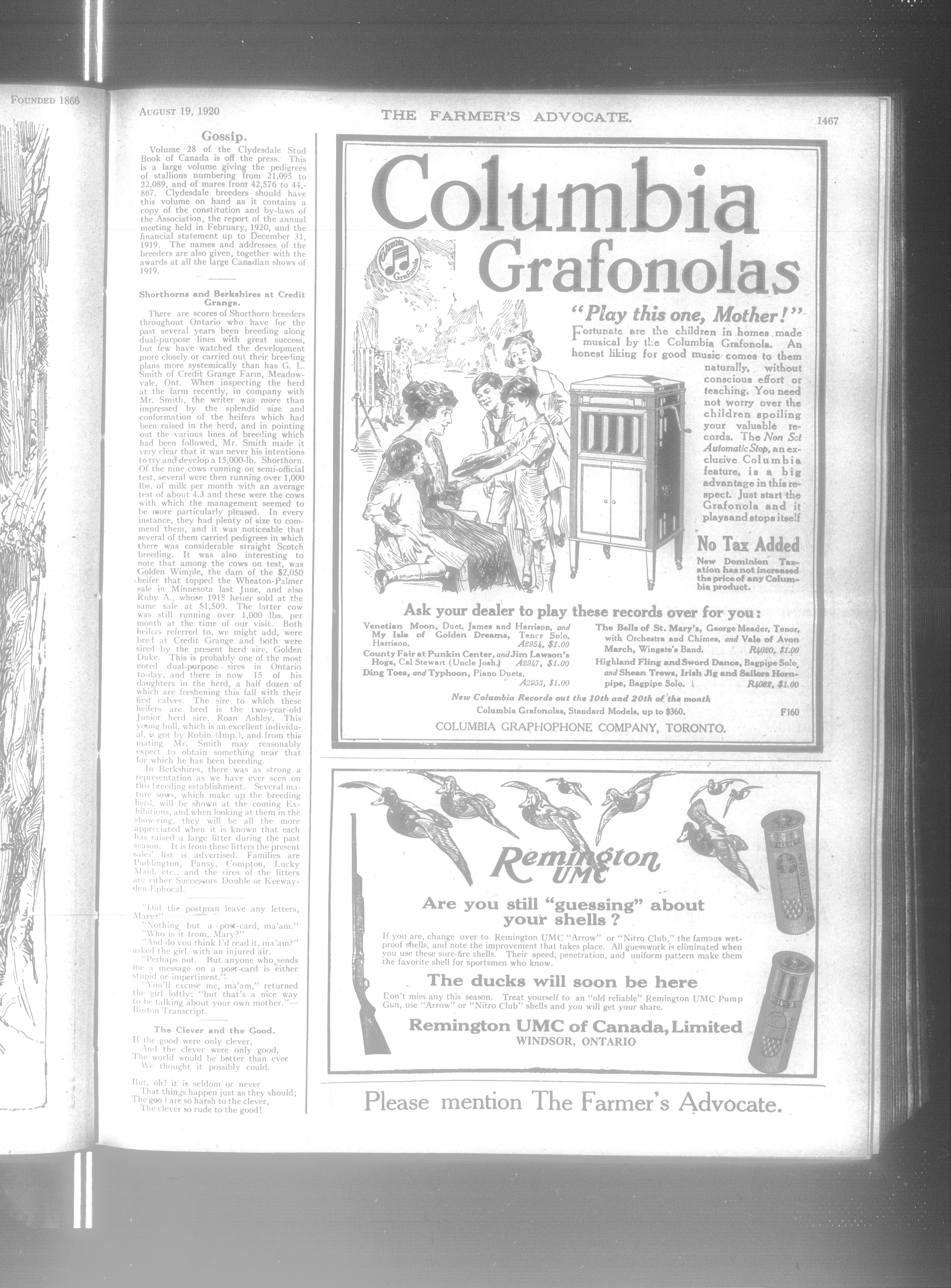 Farmer's Advocate and Home Magazine : Vol. LV, No. 1456 (August 19, 1920)