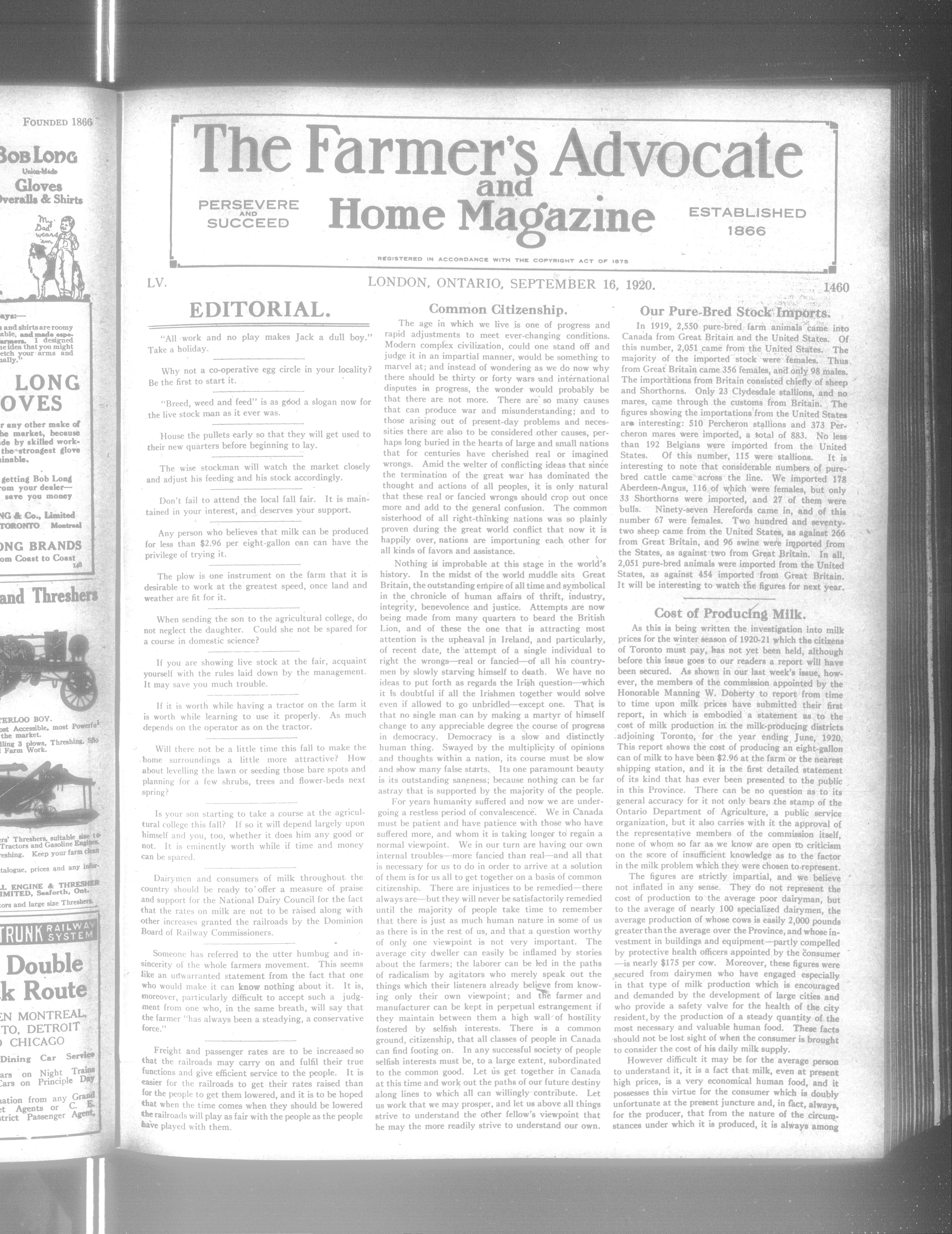Farmer's Advocate and Home Magazine : Vol. LV, No. 1460 (September 16, 1920)