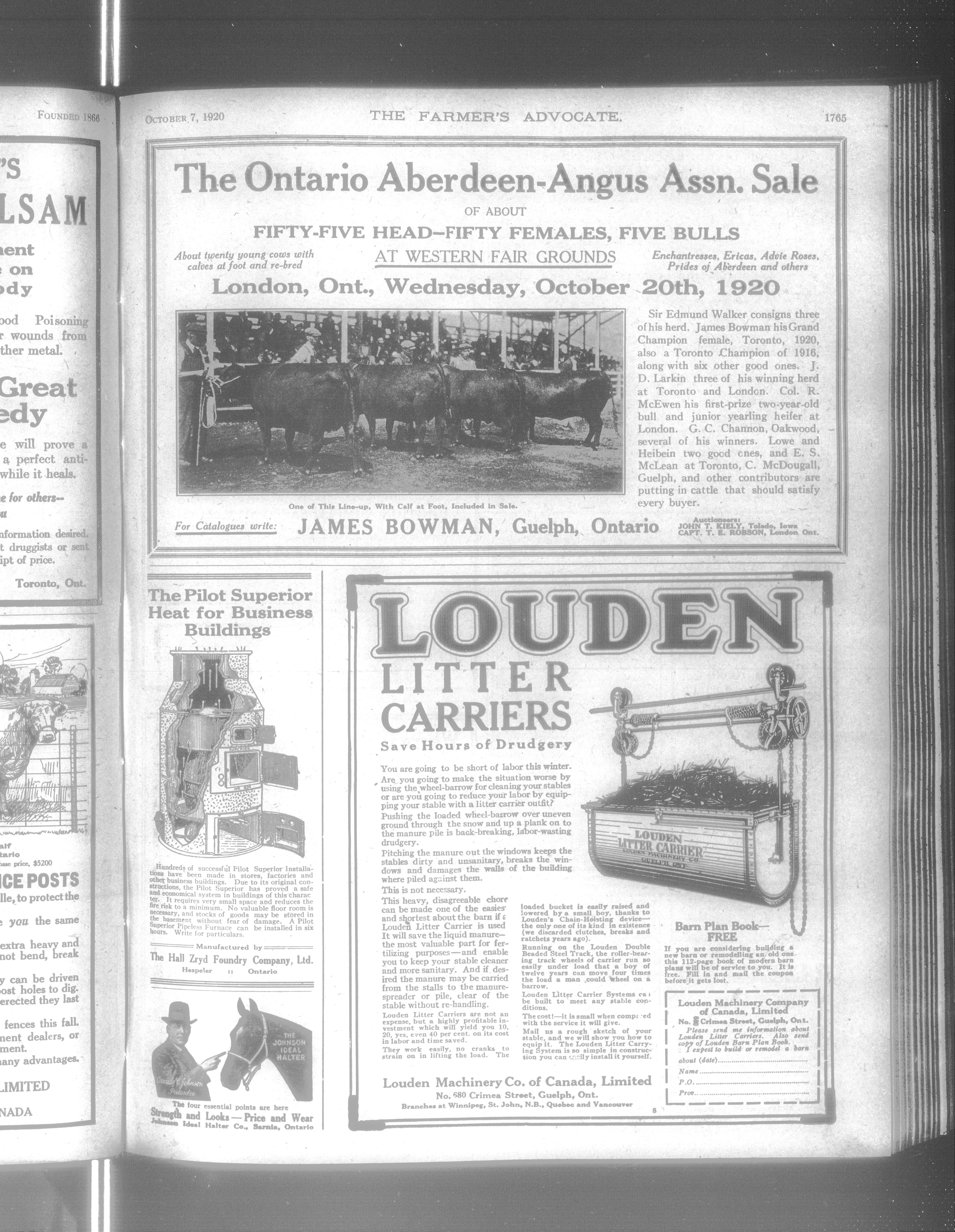 Farmer's Advocate and Home Magazine : Vol. LV, No. 1463 (October 7, 1920)