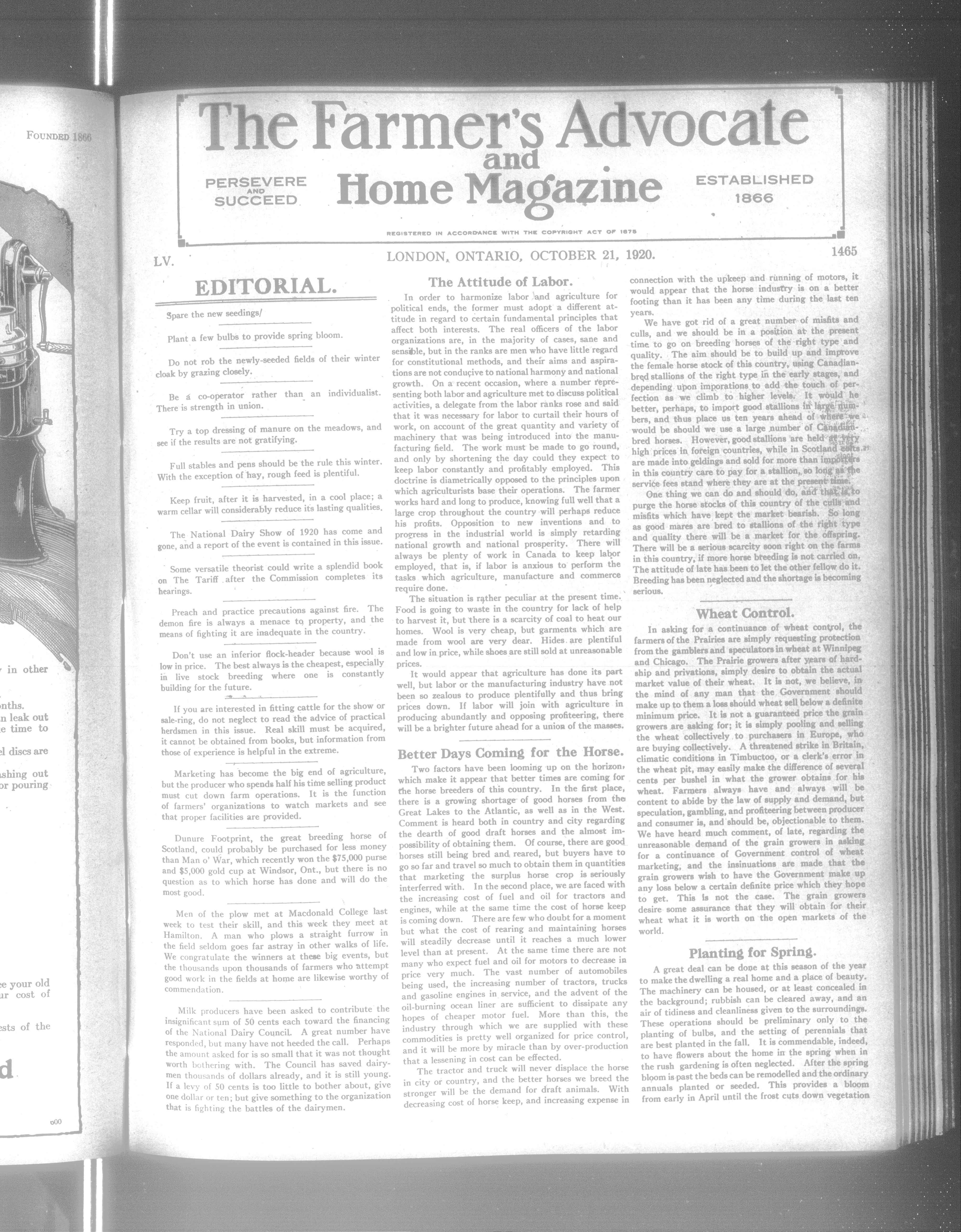 Farmer's Advocate and Home Magazine : Vol. LV, No. 1465 (October 21, 1920)