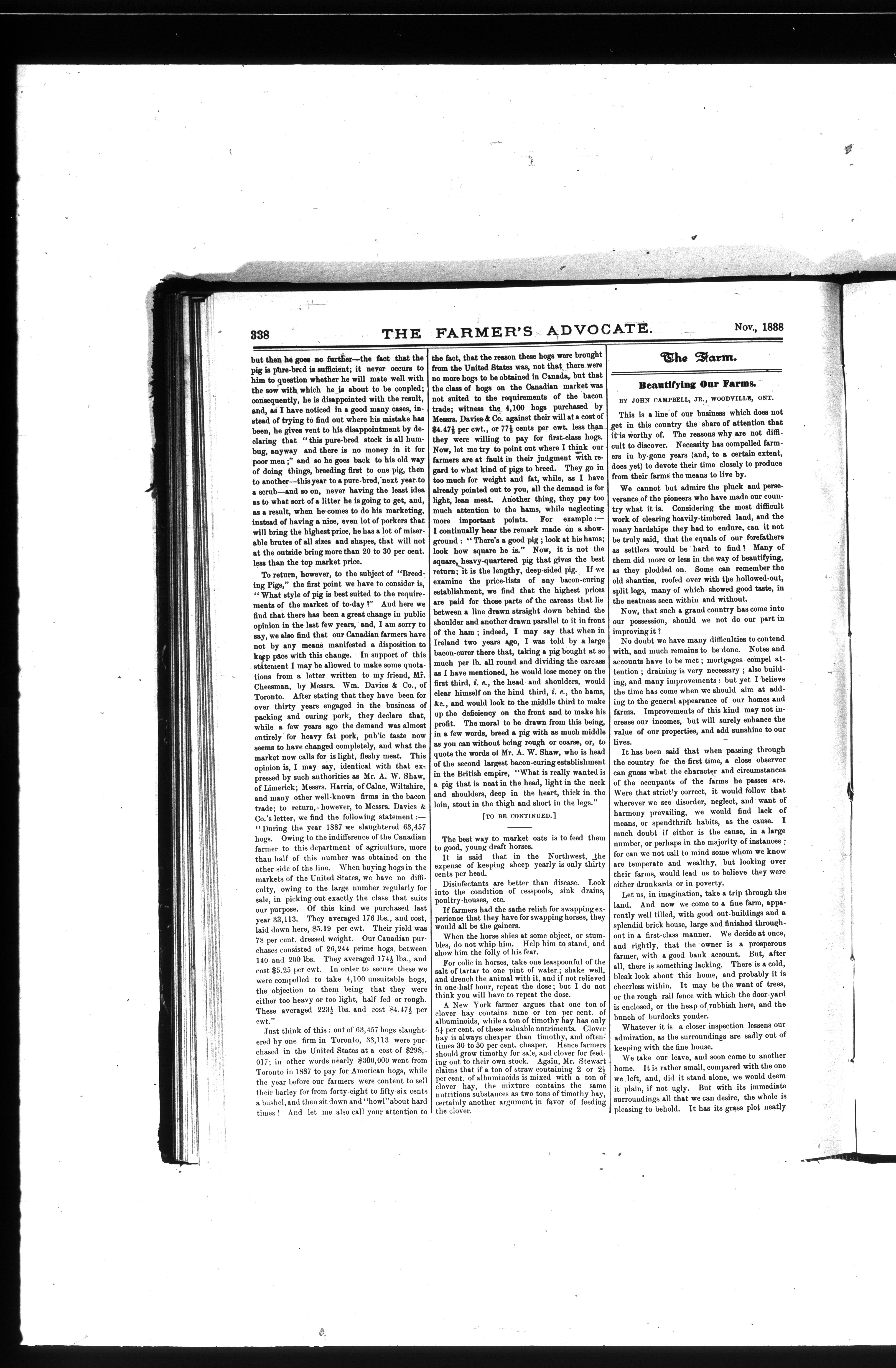 Farmer's Advocate and Home Magazine : Vol. XXIII, No. 275 (November 1888)
