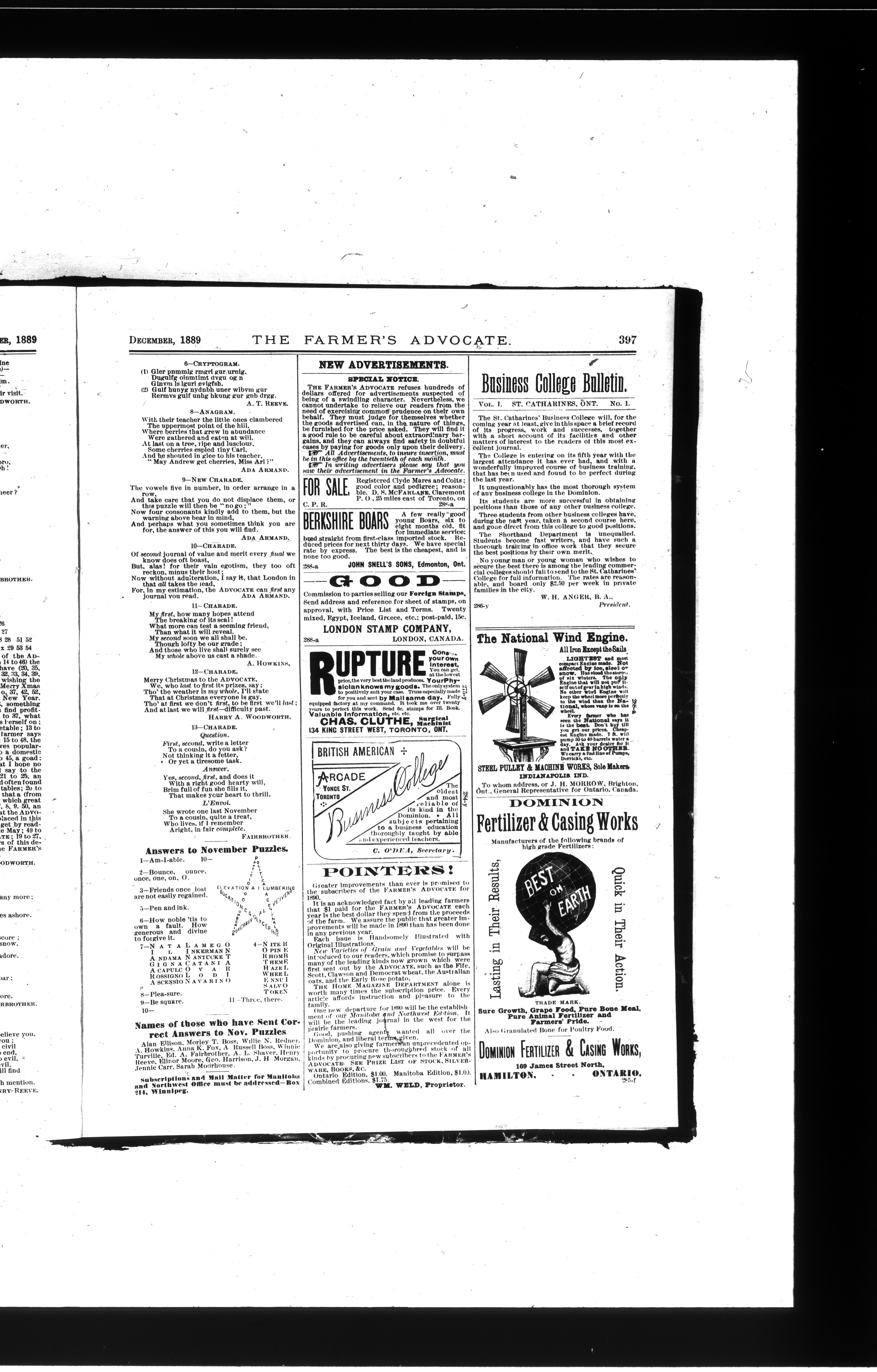 Farmer's Advocate and Home Magazine : Vol. XXIV, No. 288 (December 1889)