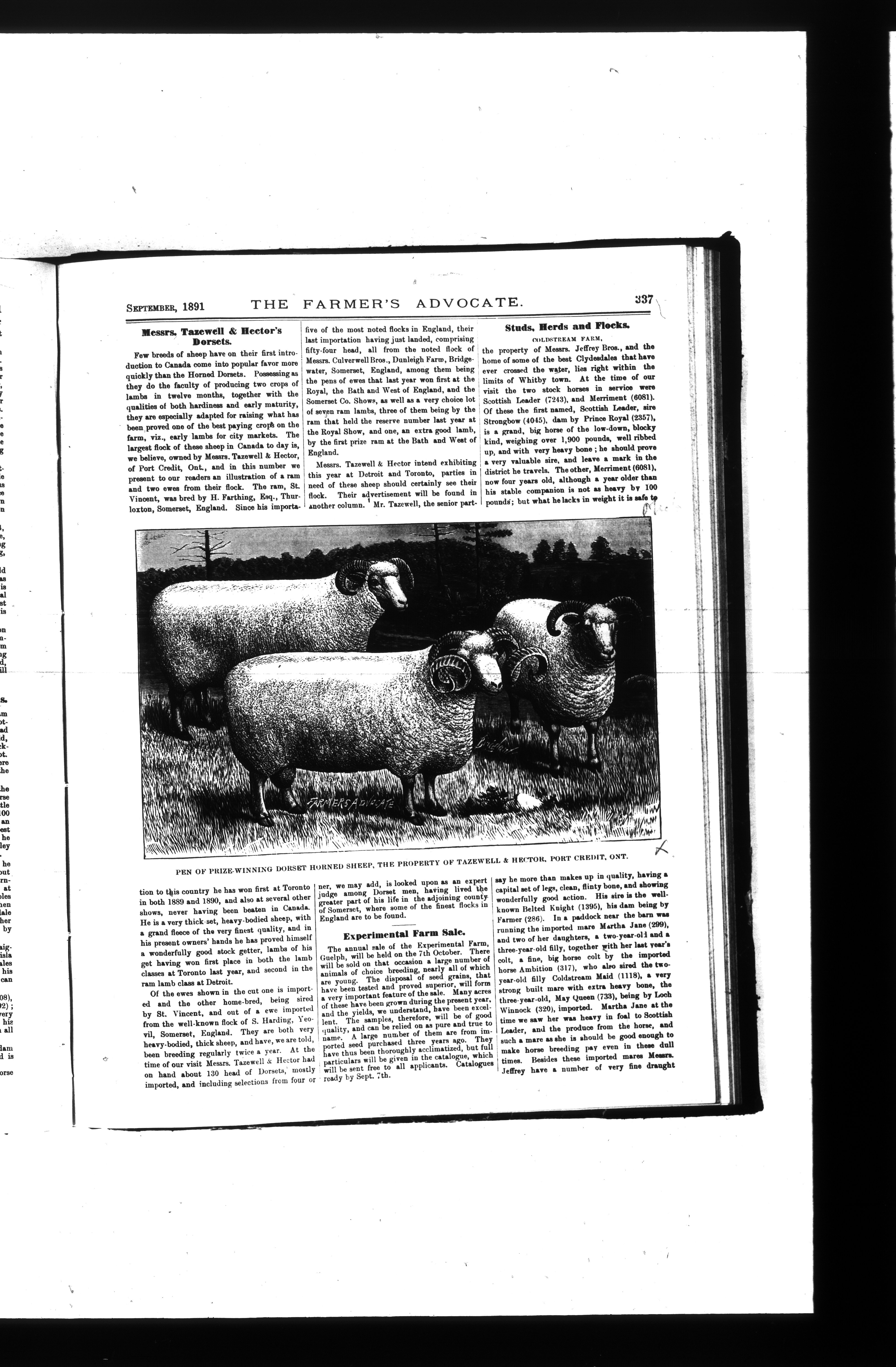 Farmer's Advocate and Home Magazine : Vol. XXVI, No. 309 (September 1891)