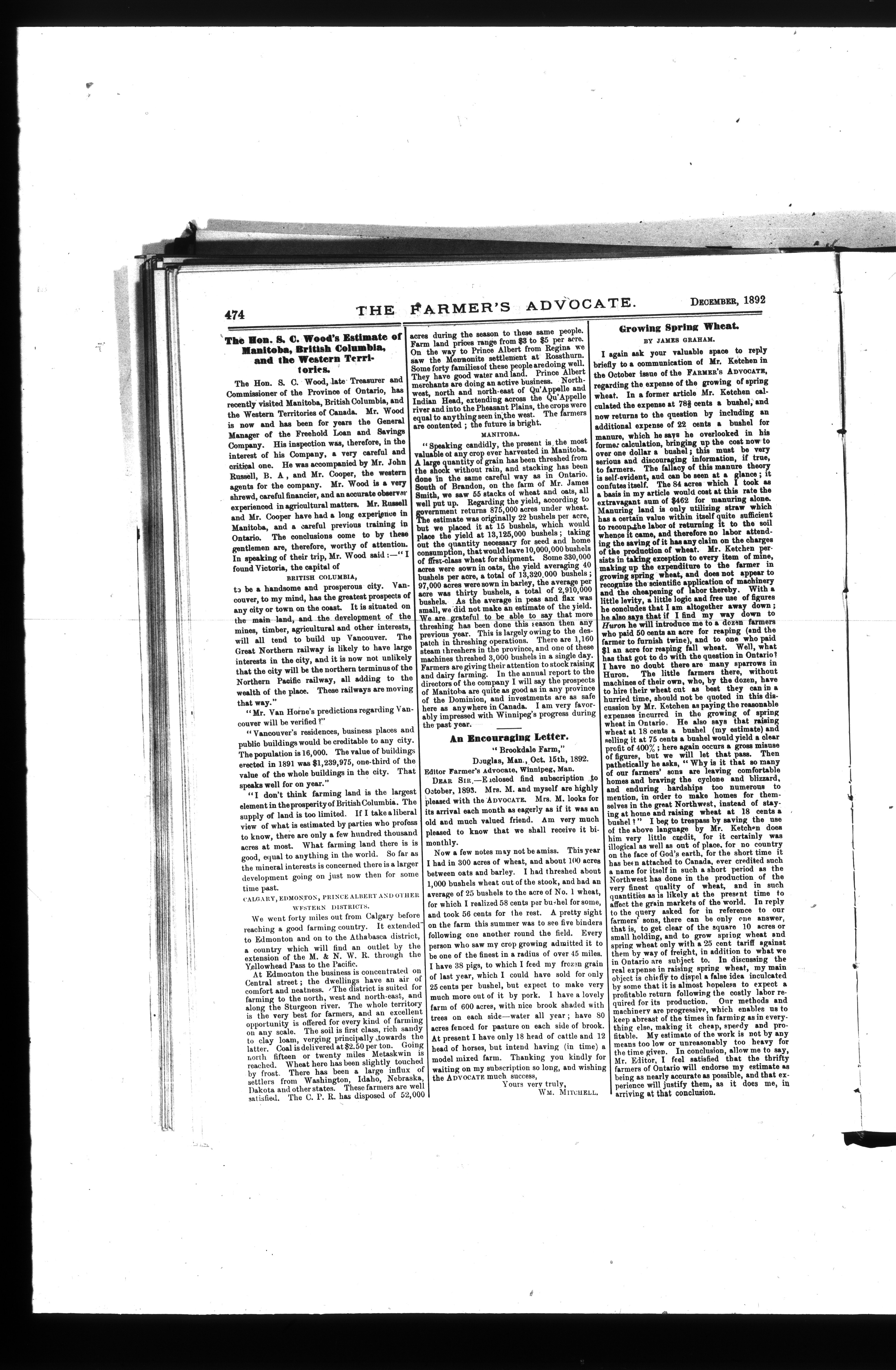 Farmer's Advocate and Home Magazine : Vol. XXVII, No. 324 (December 1892)