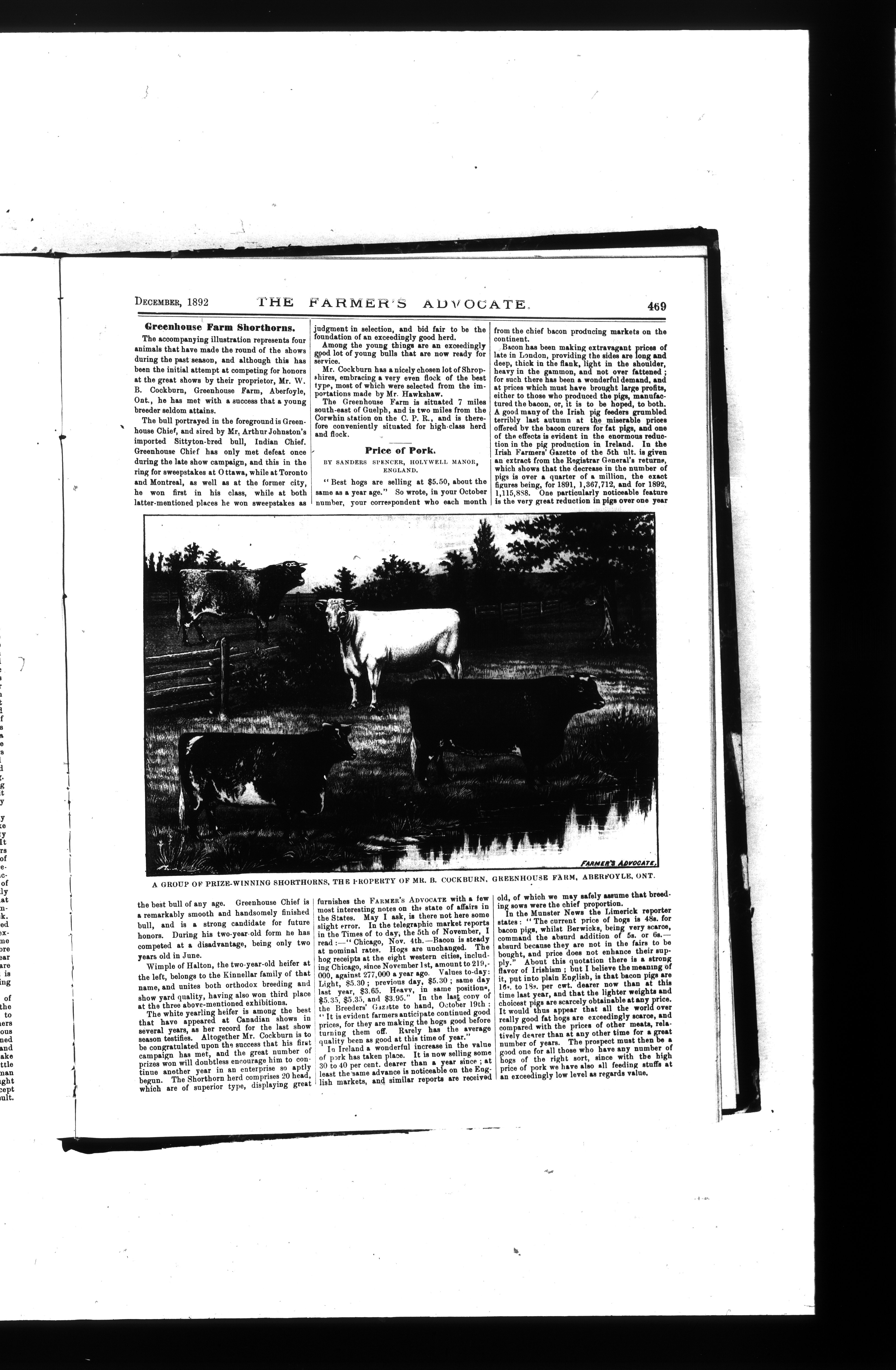 Farmer's Advocate and Home Magazine : Vol. XXVII, No. 324 (December 1892)