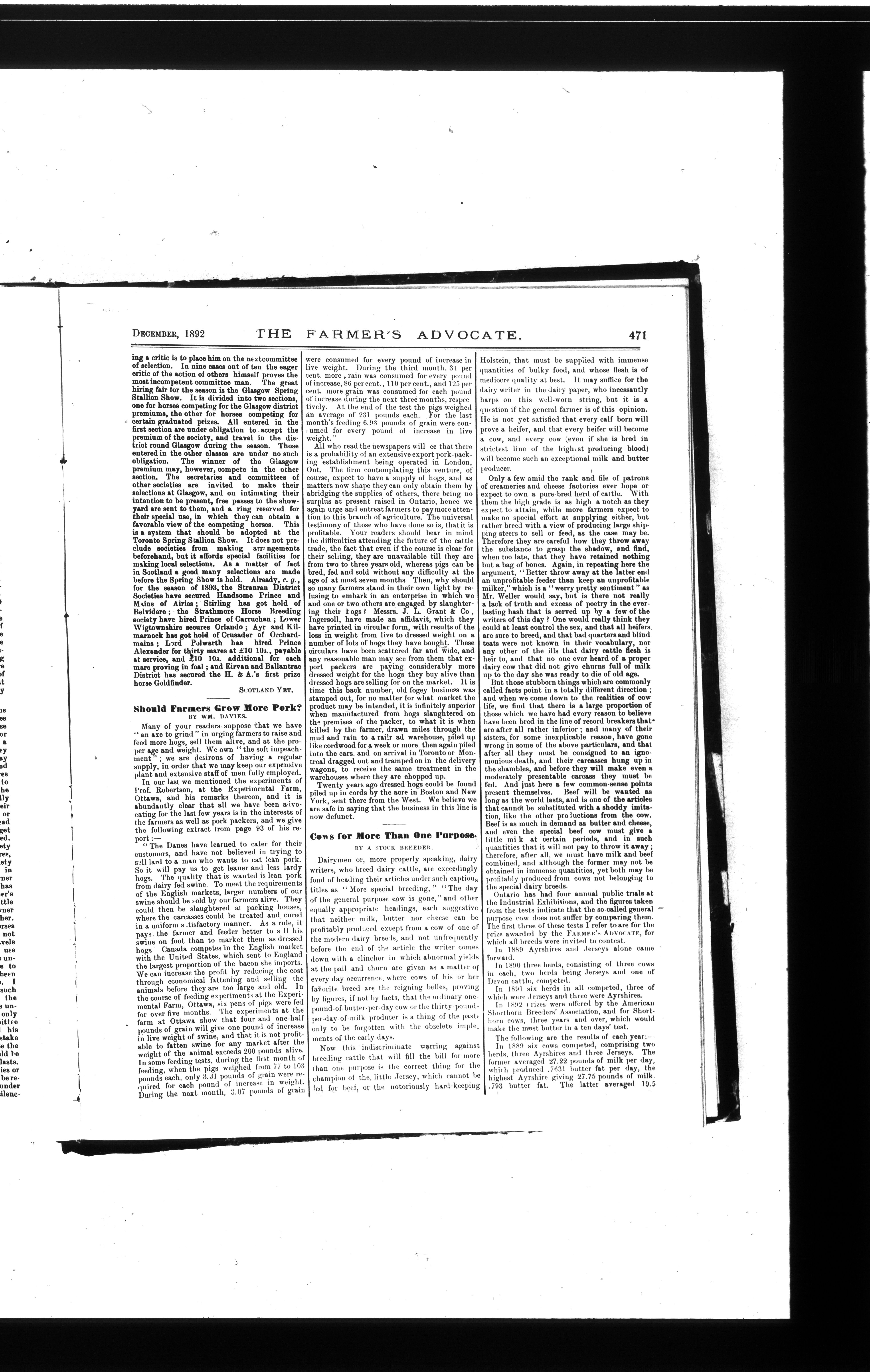Farmer's Advocate and Home Magazine : Vol. XXVII, No. 324 (December 1892)