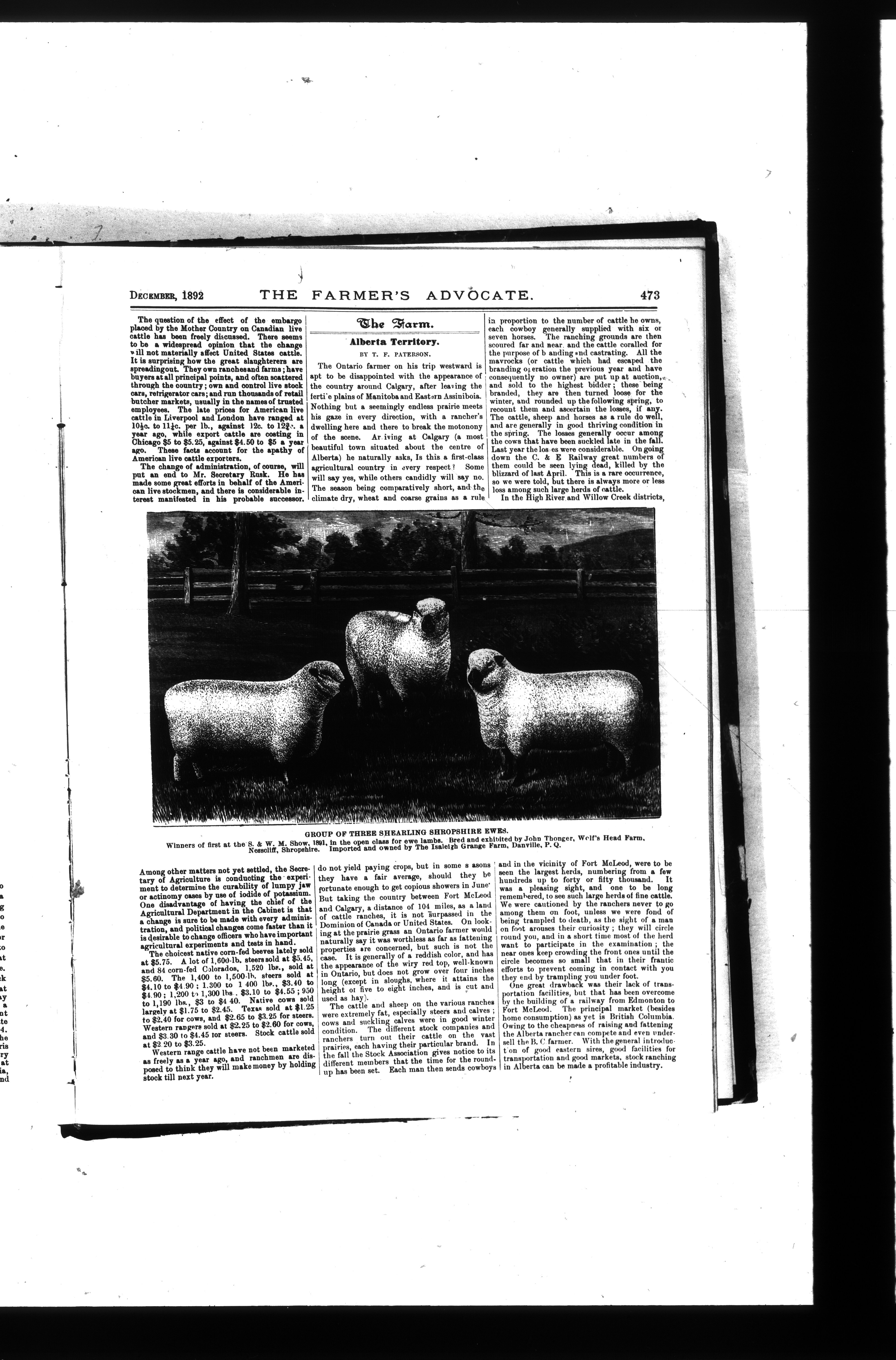 Farmer's Advocate and Home Magazine : Vol. XXVII, No. 324 (December 1892)