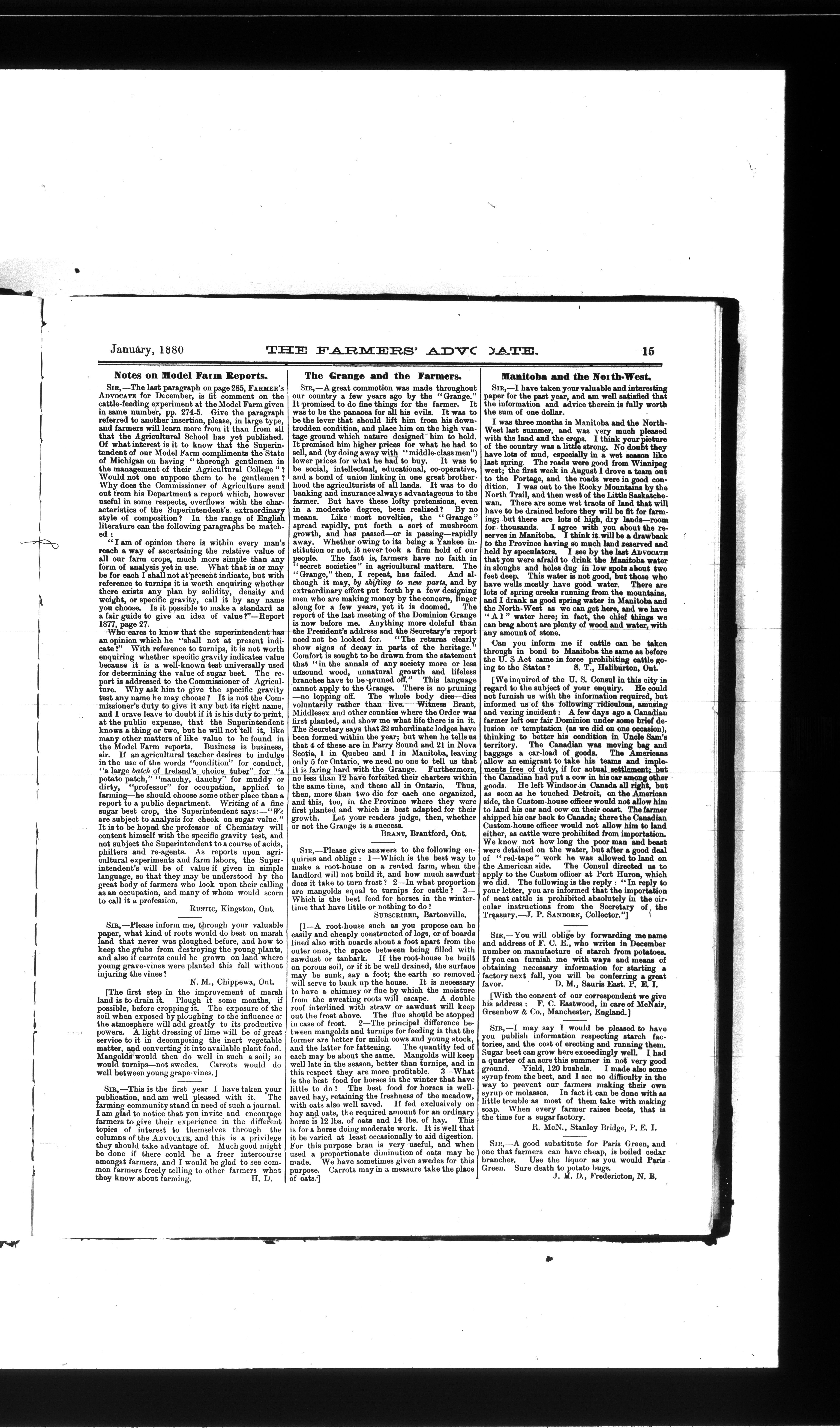 Farmer's Advocate and Home Magazine : Vol. XV, No. 1 (January 1880)
