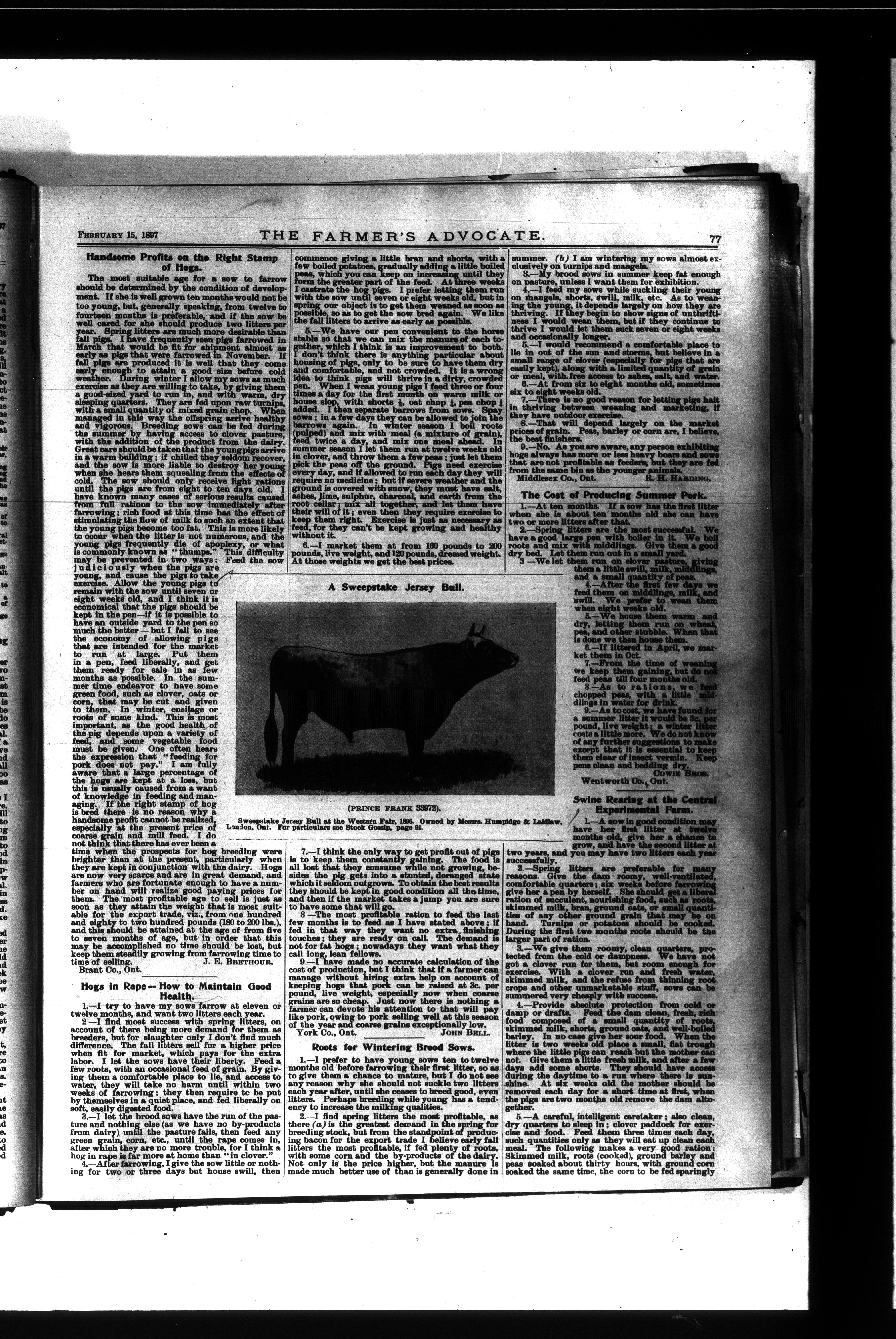 Farmer's Advocate and Home Magazine : Vol. XXXII, No. 424 (February 15, 1897)