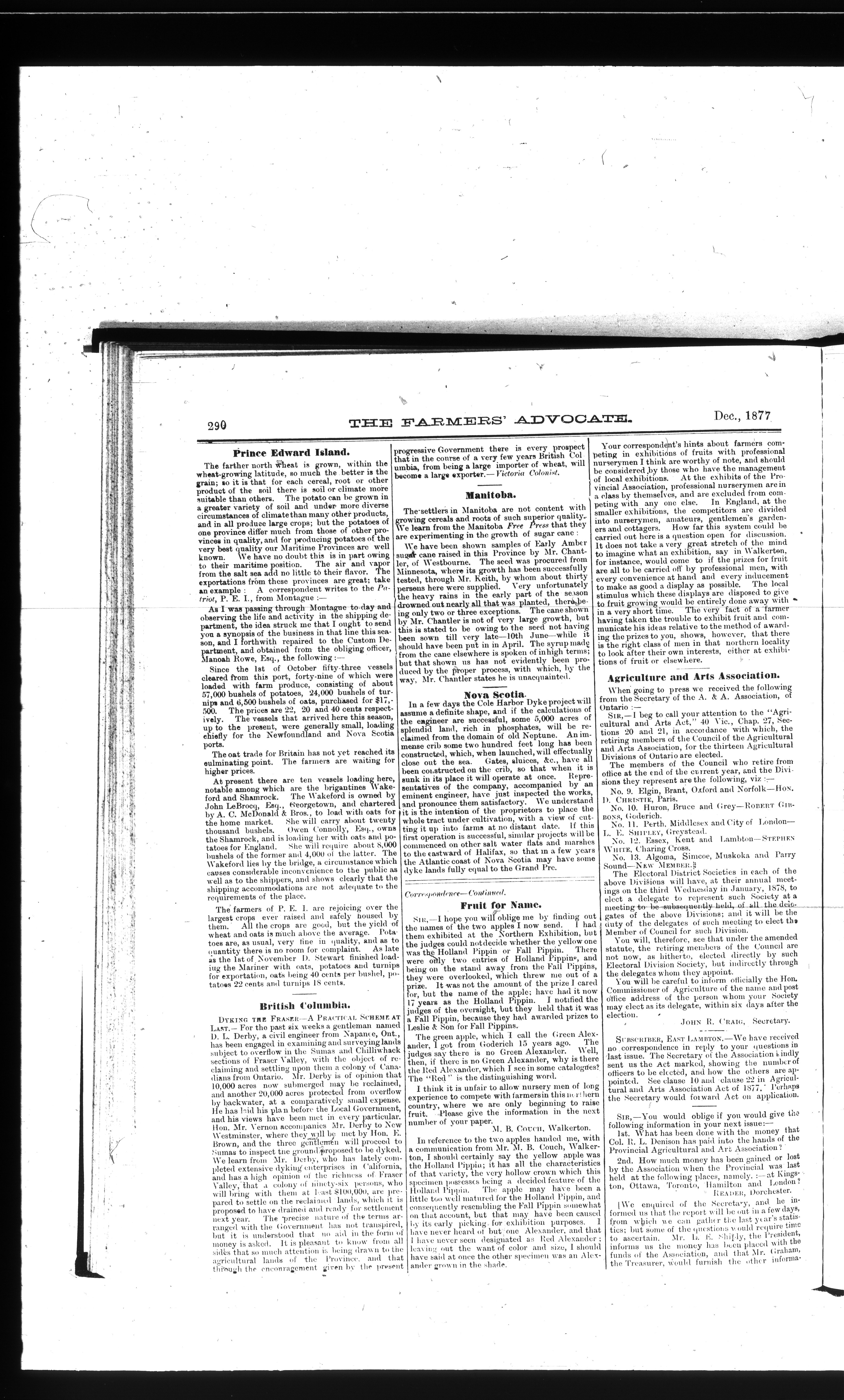 Farmer's Advocate and Home Magazine : Vol. XII, No. 12 (December 1877)