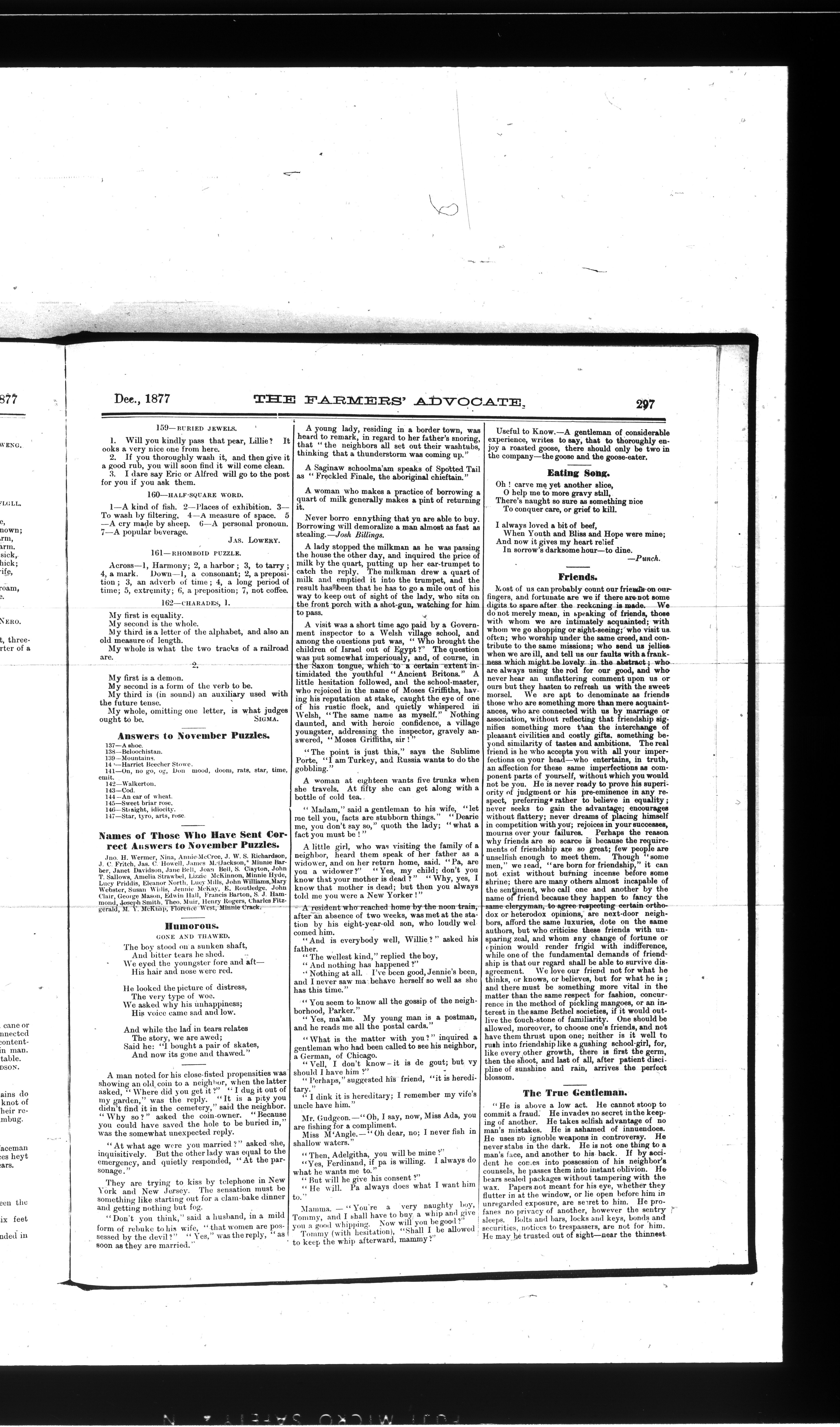 Farmer's Advocate and Home Magazine : Vol. XII, No. 12 (December 1877)