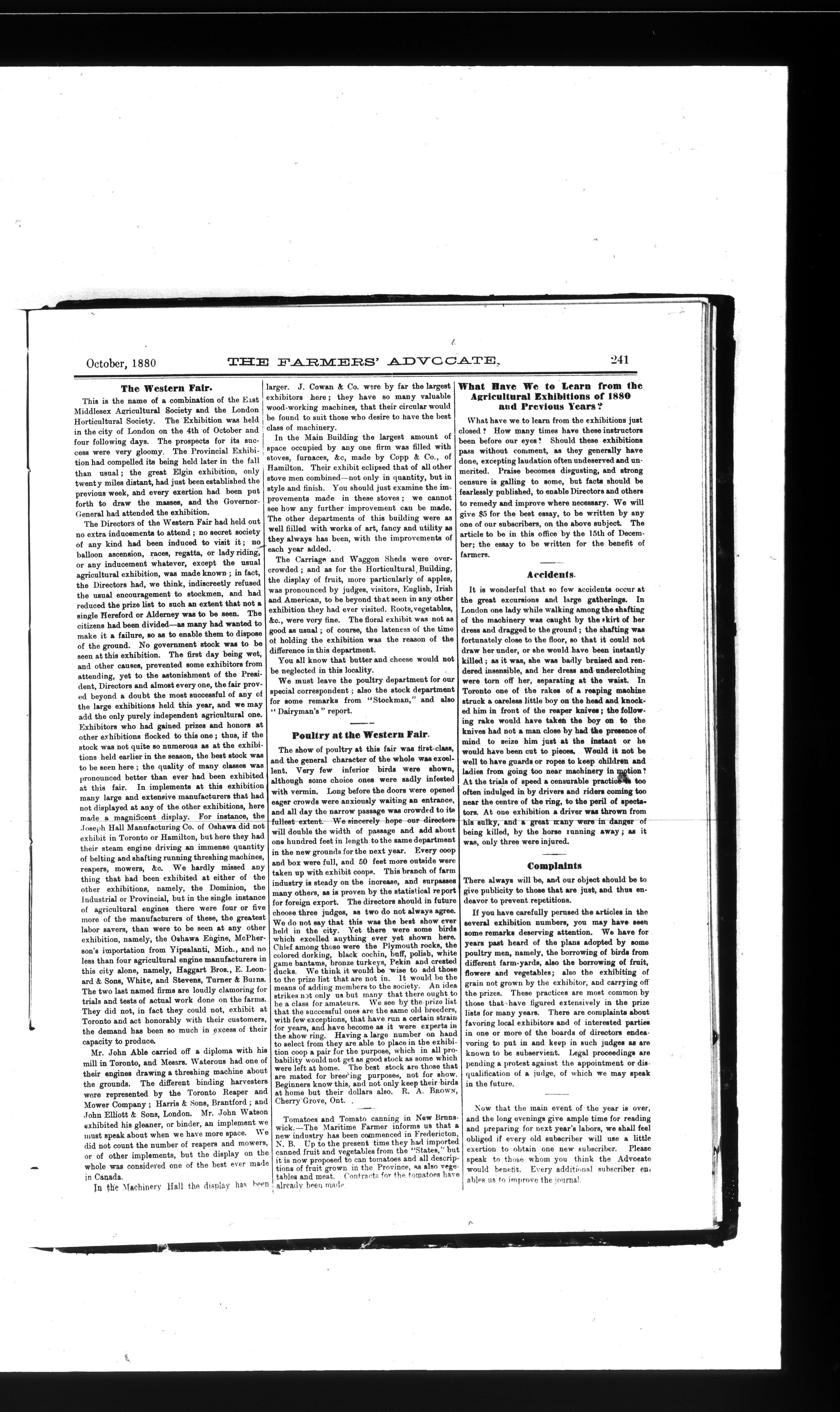 Farmer's Advocate and Home Magazine : Vol. XV, No. 10 (October 1880)