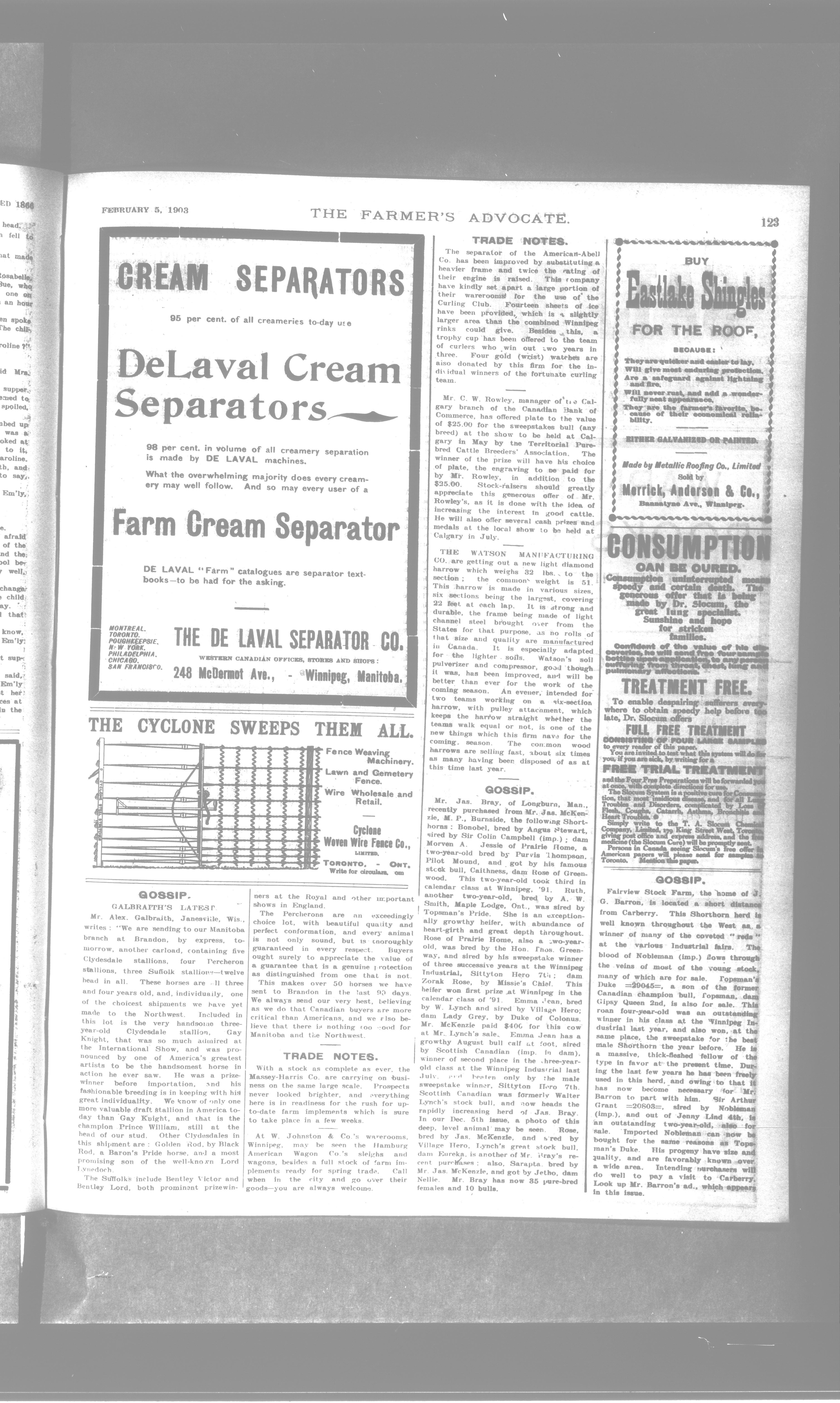Farmer's Advocate and Home Magazine : Vol. XXXVIII, No. 567 (February 5, 1903)
