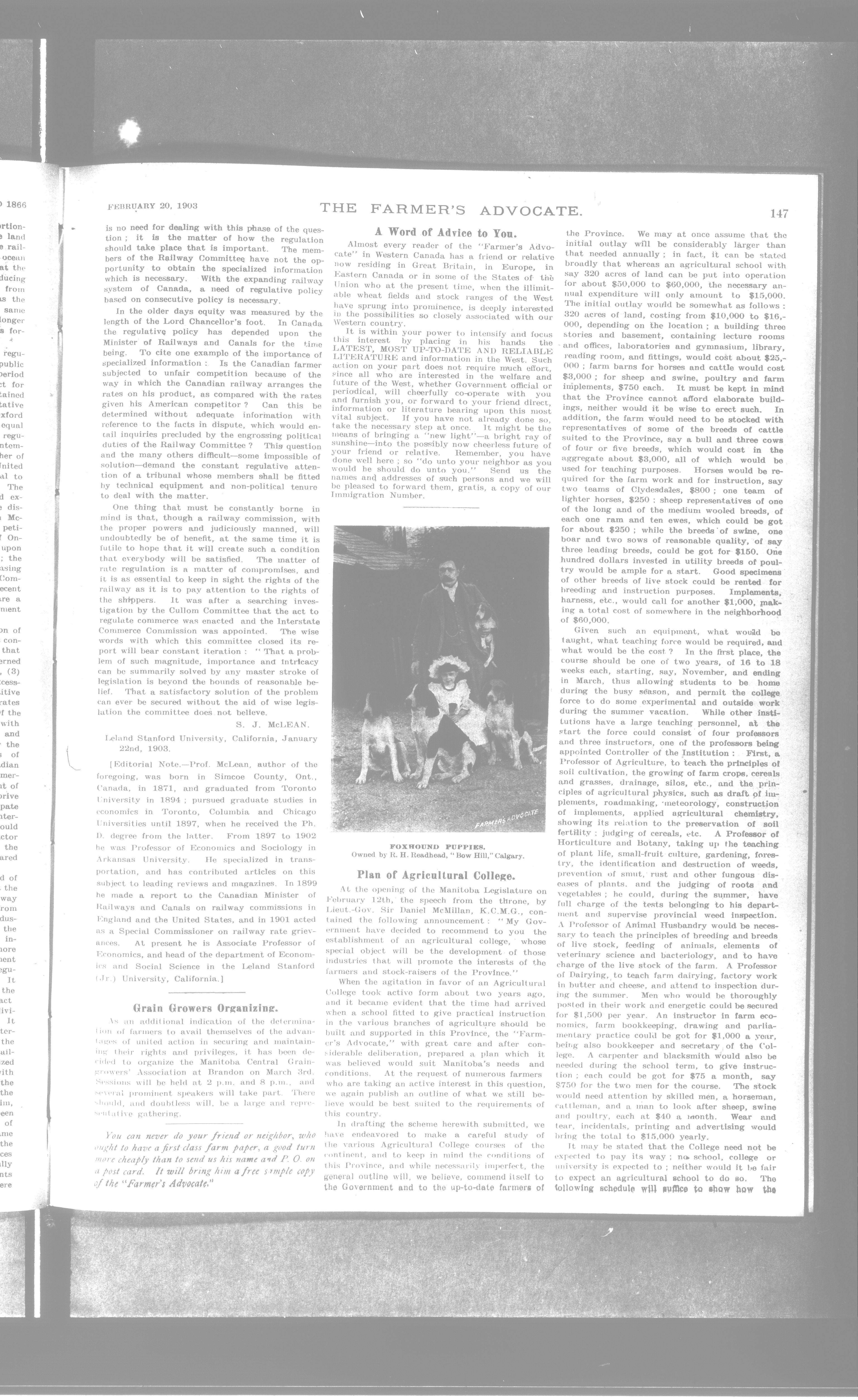 Farmer's Advocate and Home Magazine : Vol. XXXVIII, No. 568 (February 20, 1903)