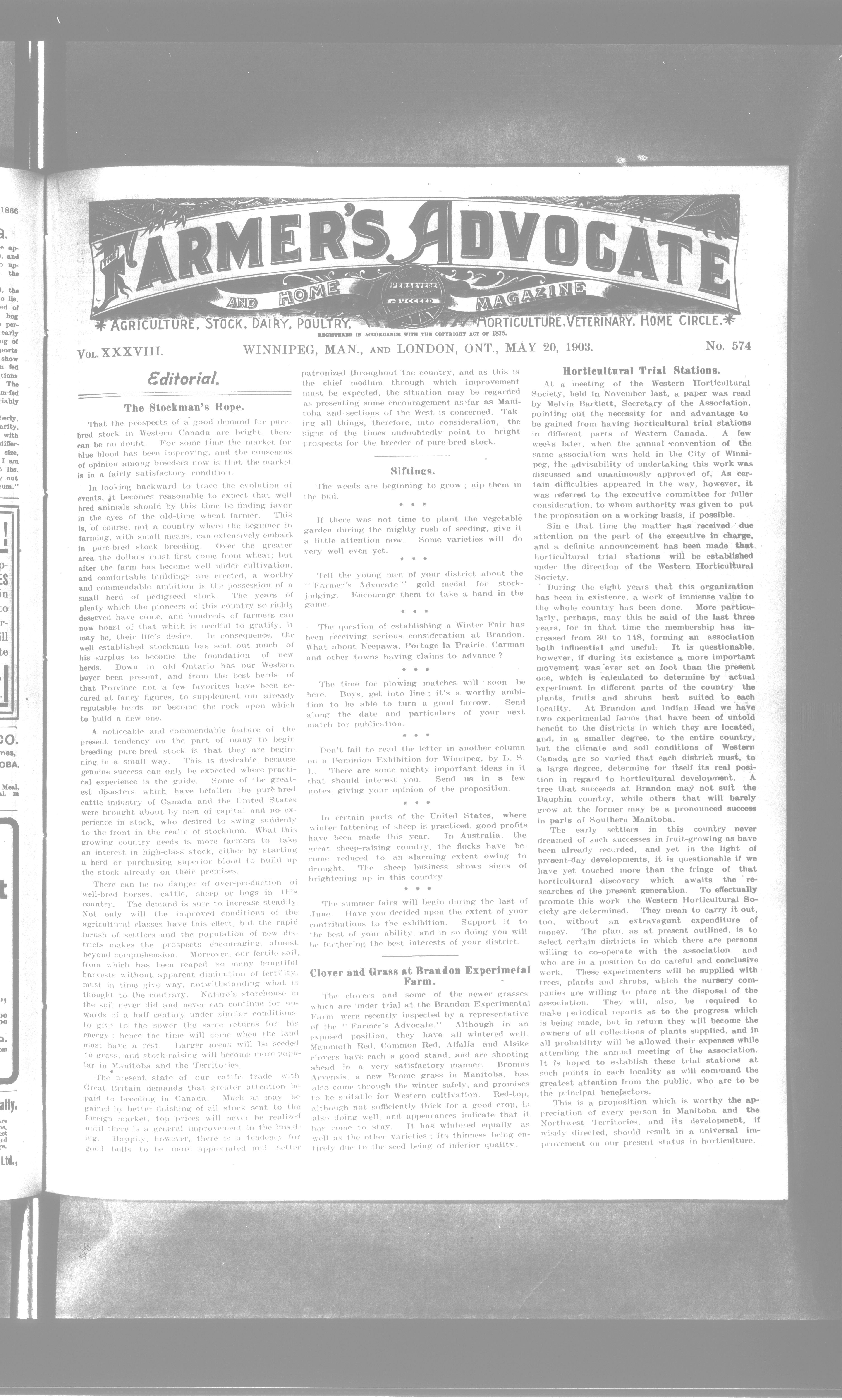 Farmer's Advocate and Home Magazine : Vol. XXXVIII, No. 574 (May 20, 1903)