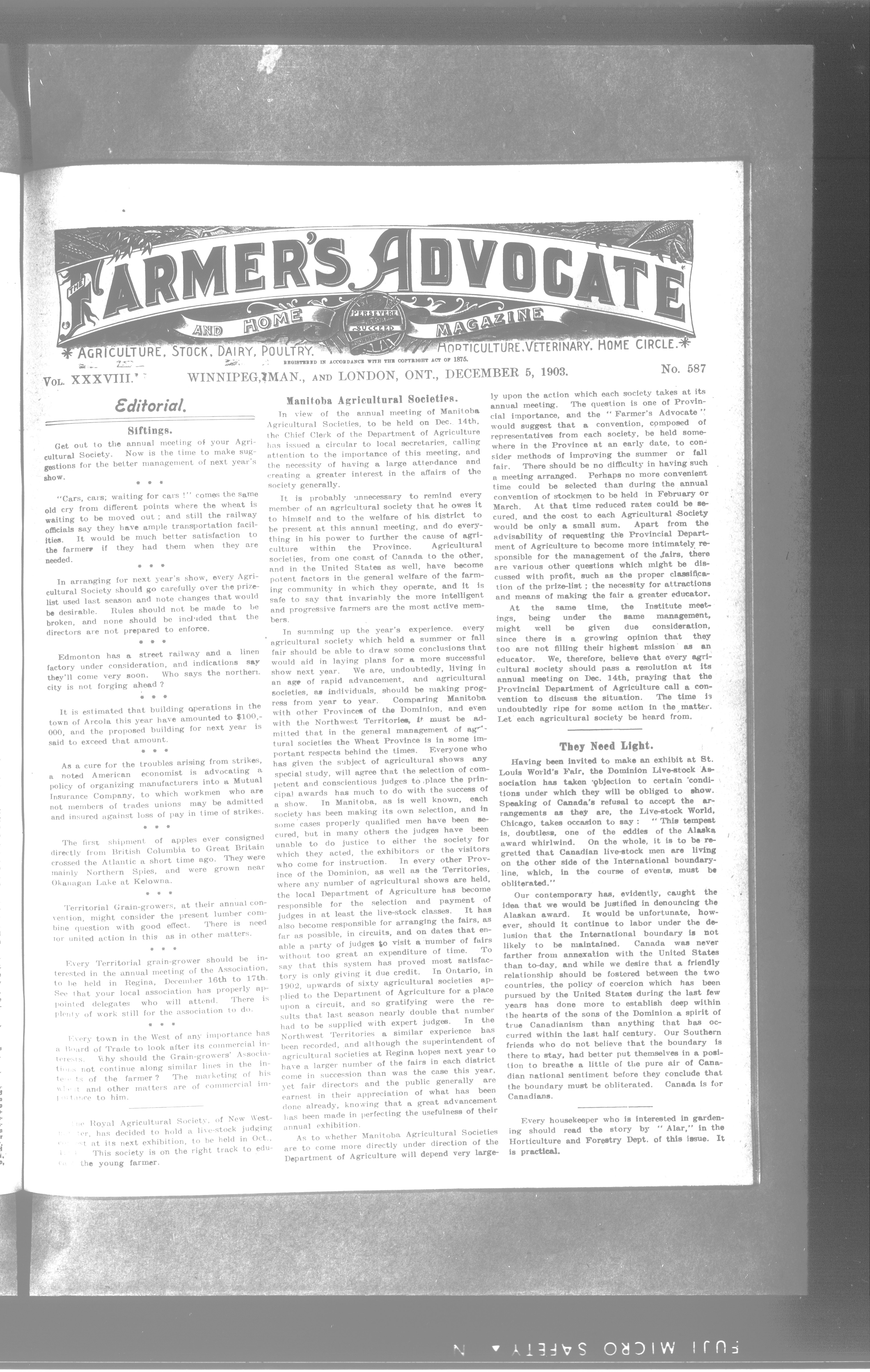 Farmer's Advocate and Home Magazine : Vol. XXXVIII, No. 587 (December 5, 1903)