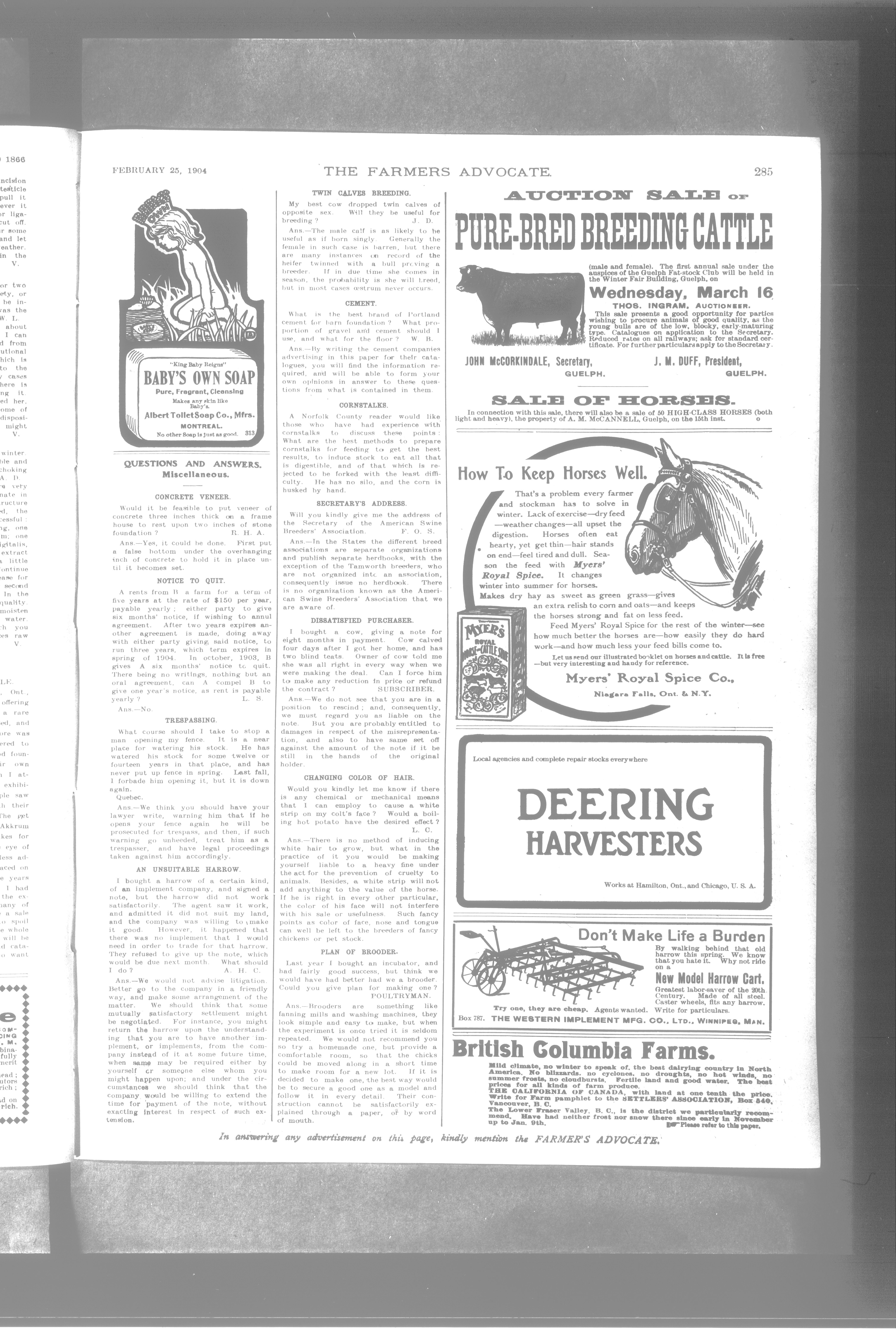 Farmer's Advocate and Home Magazine : Vol. XXXIX, No. 596 (February 25, 1904)