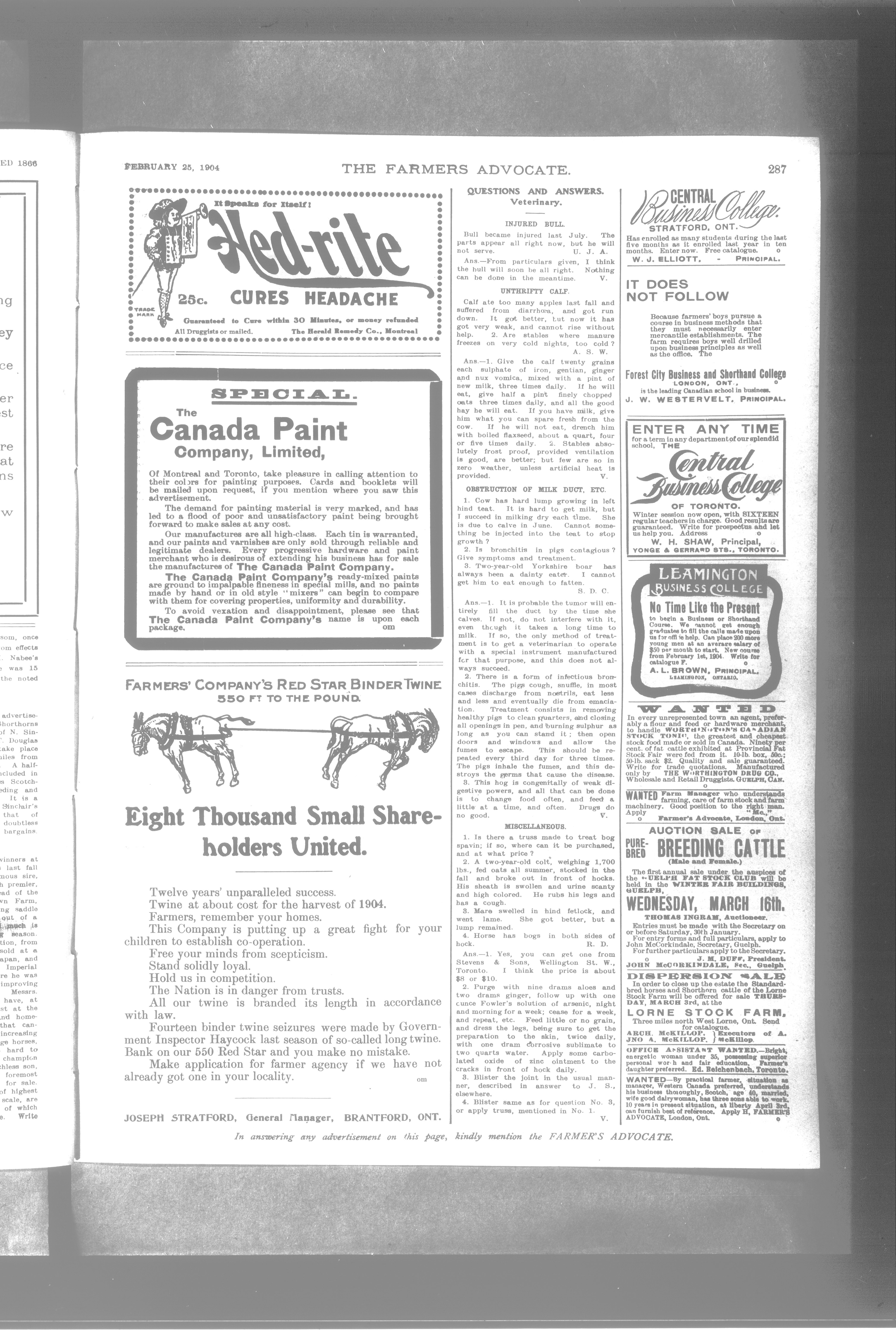 Farmer's Advocate and Home Magazine : Vol. XXXIX, No. 596 (February 25, 1904)