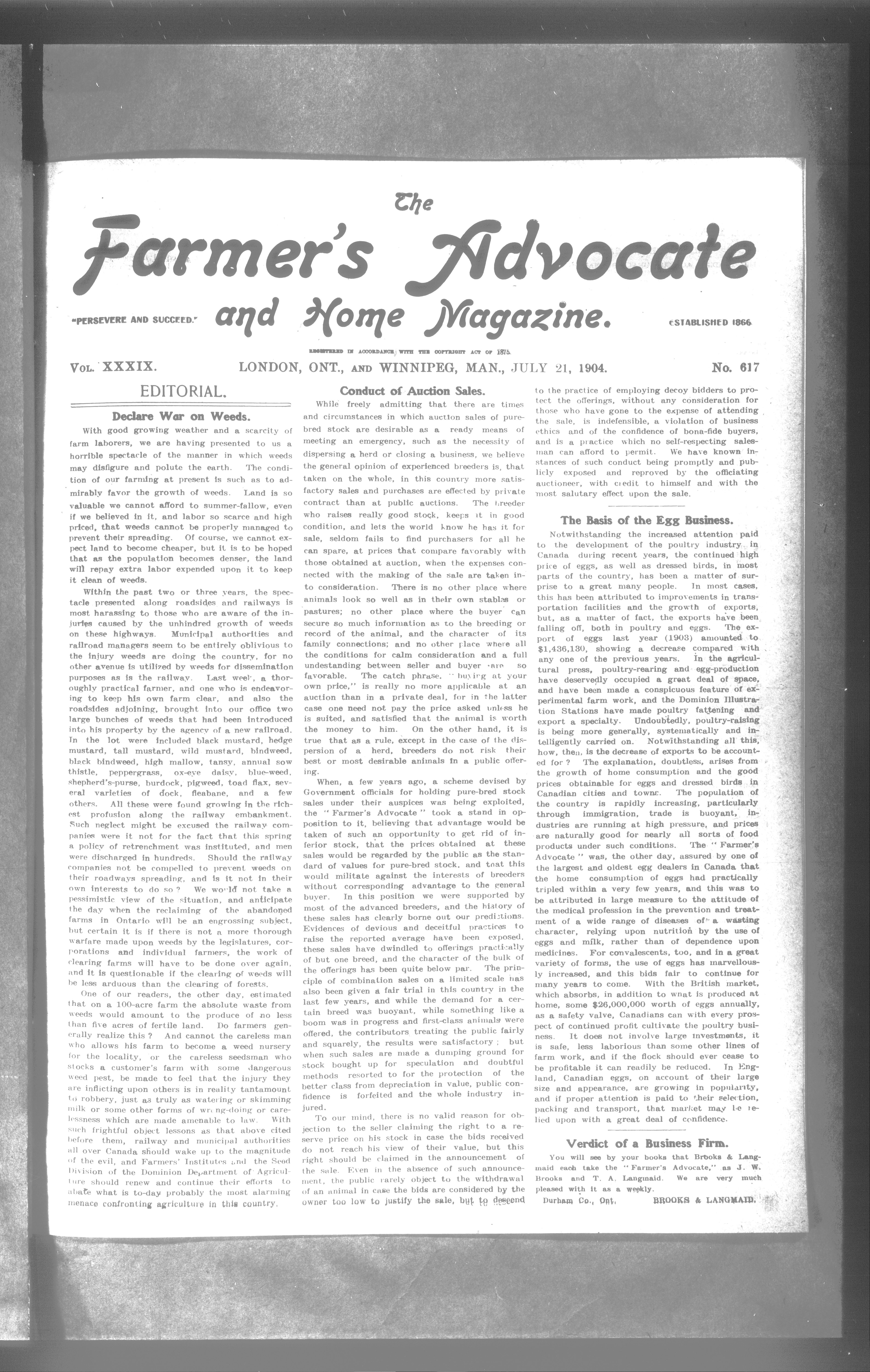 Farmer's Advocate and Home Magazine : Vol. XXXIX, No. 617 (July 21, 1904)