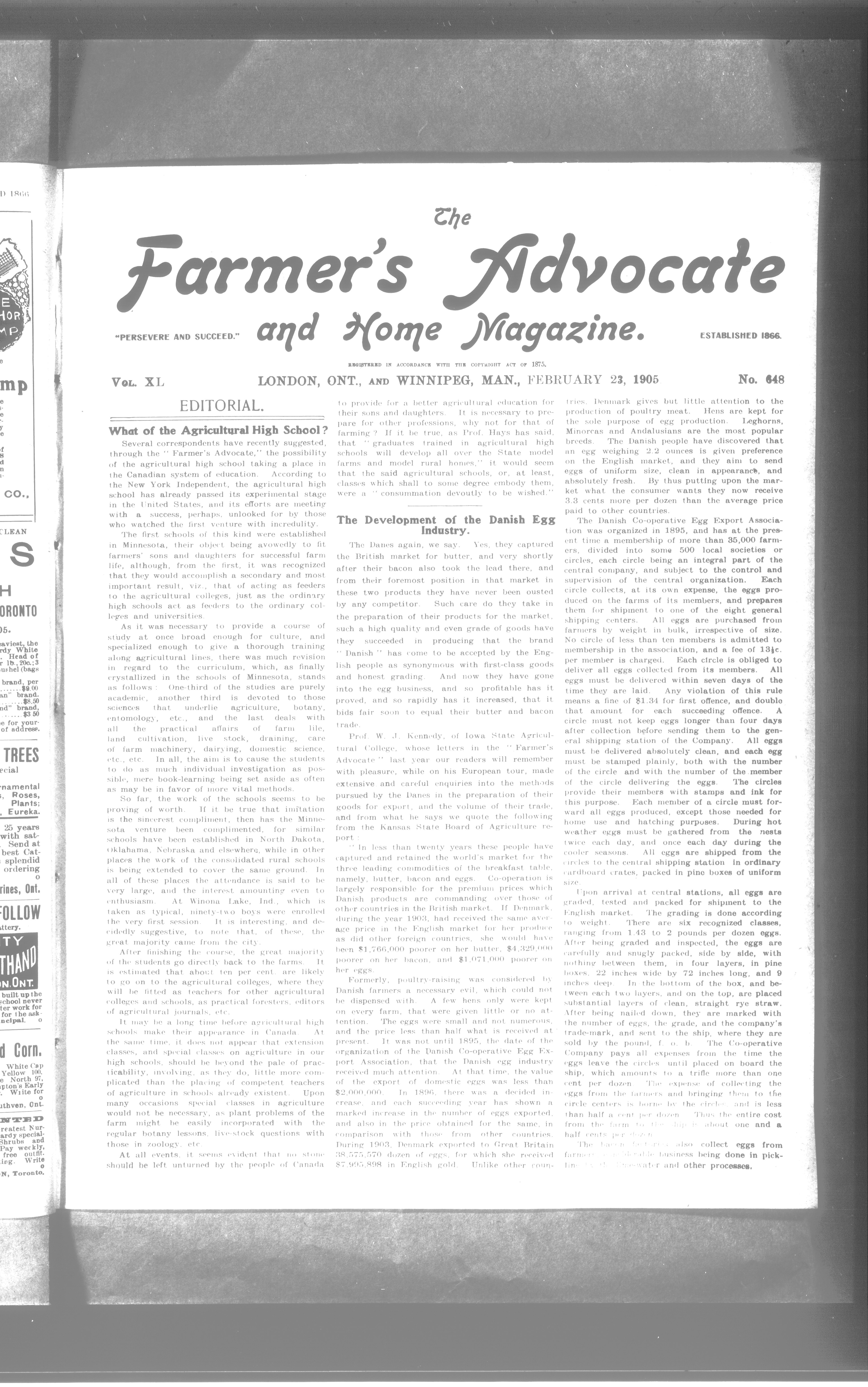 Farmer's Advocate and Home Magazine : Vol. XL, No. 648 (February 23, 1905)