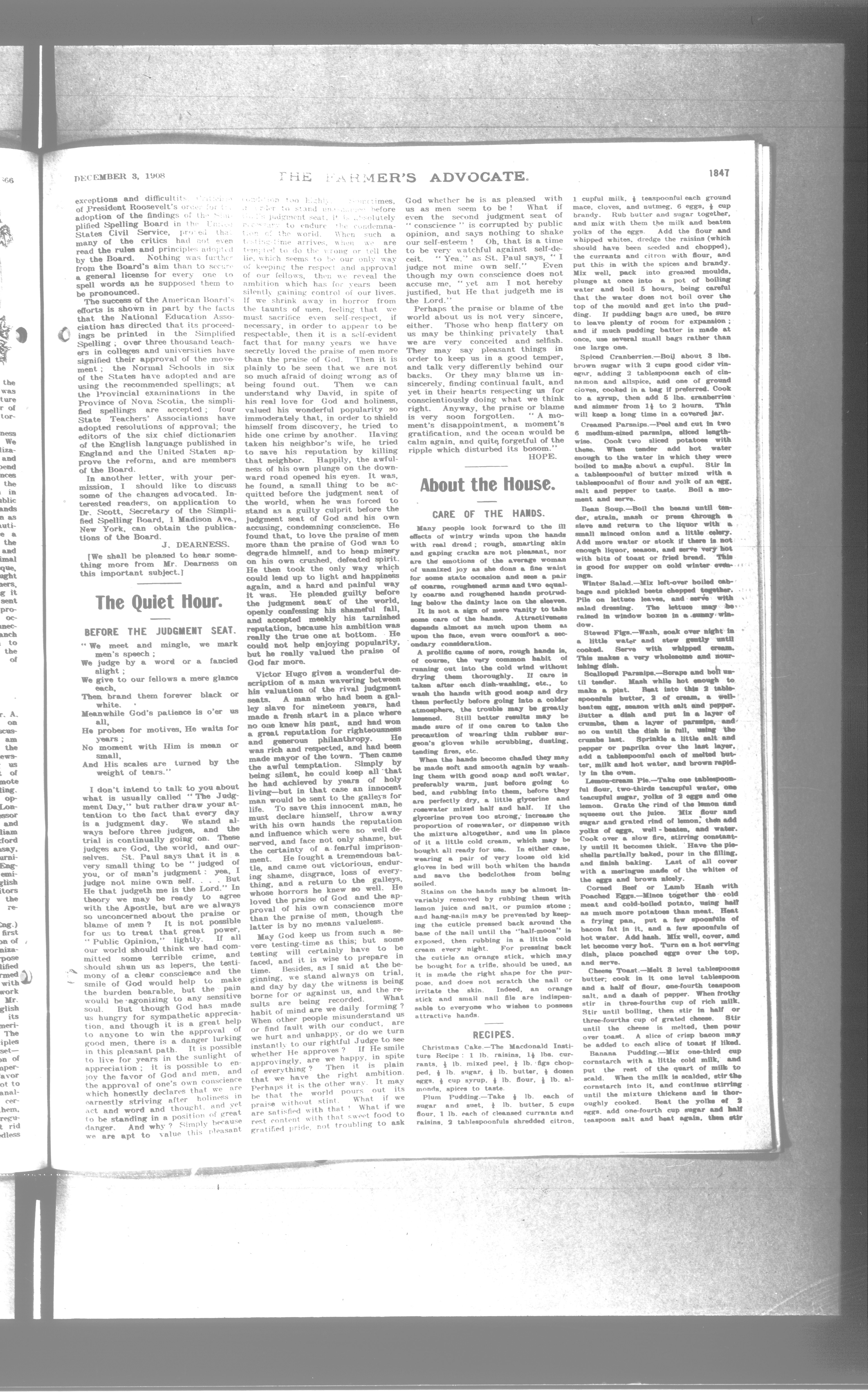 Farmer's Advocate and Home Magazine : Vol. XLIII, No. 845 (December 3, 1908)