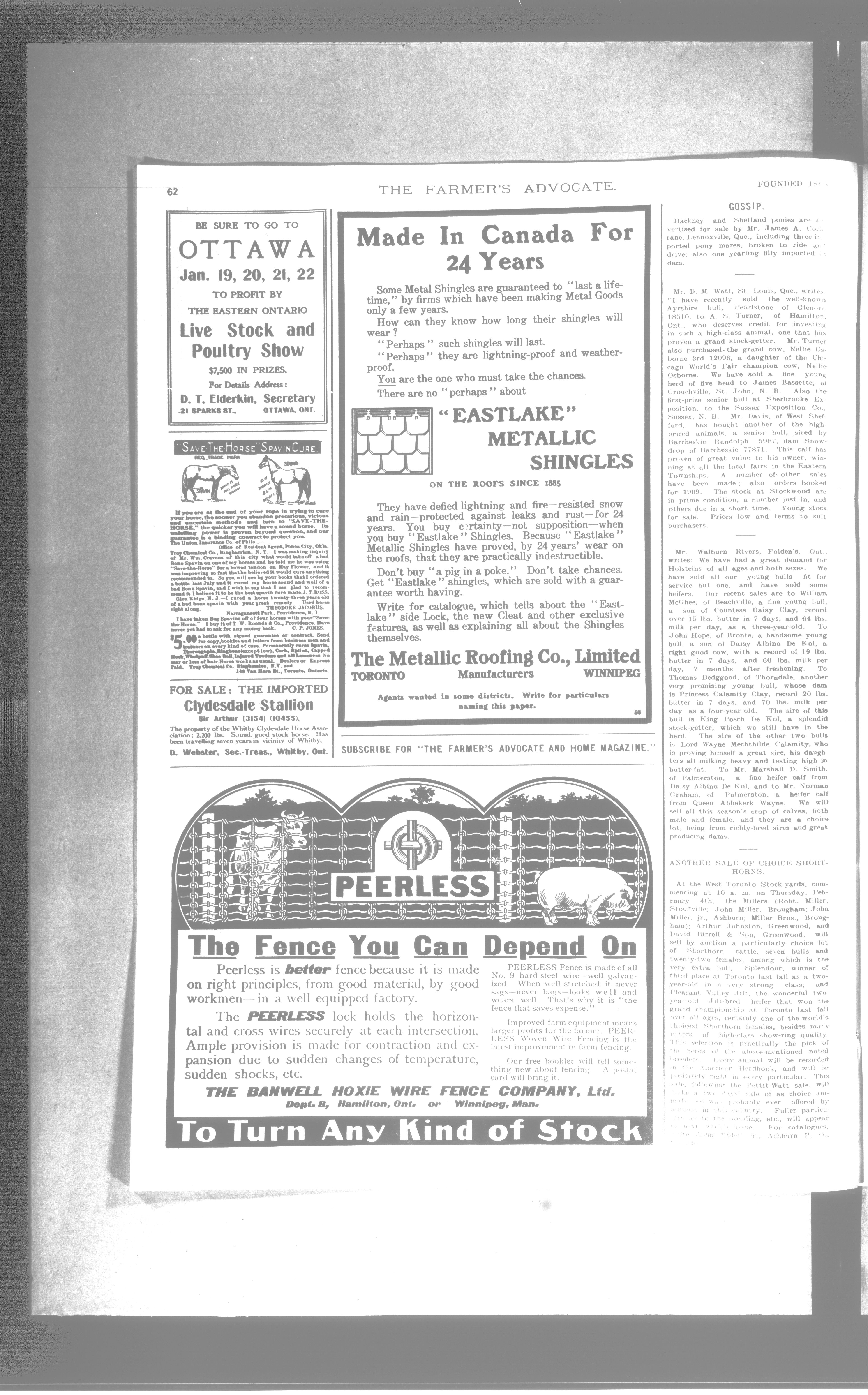 Farmer's Advocate and Home Magazine : Vol. XLIV, No. 851 (January 14, 1909)