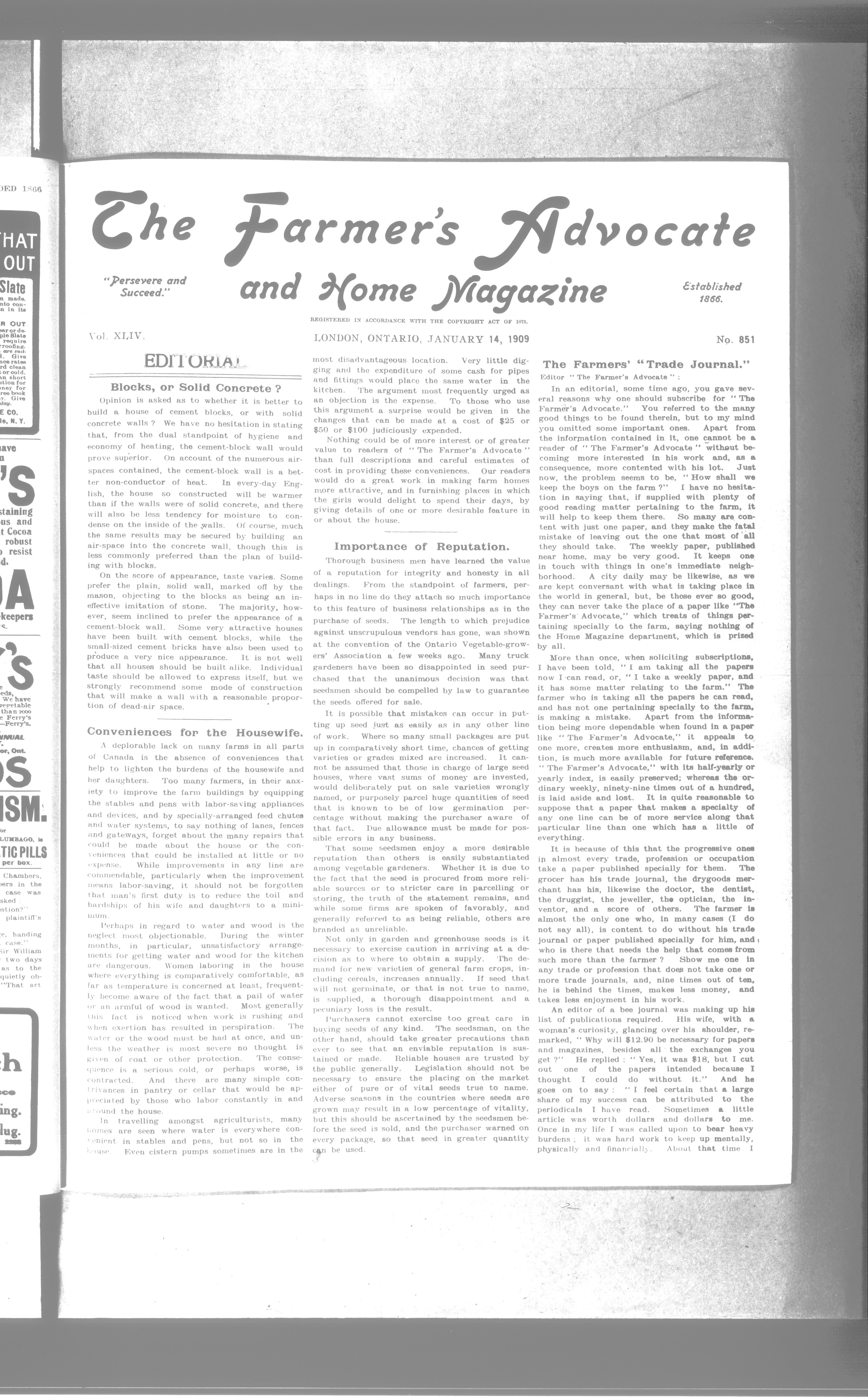Farmer's Advocate and Home Magazine : Vol. XLIV, No. 851 (January 14, 1909)