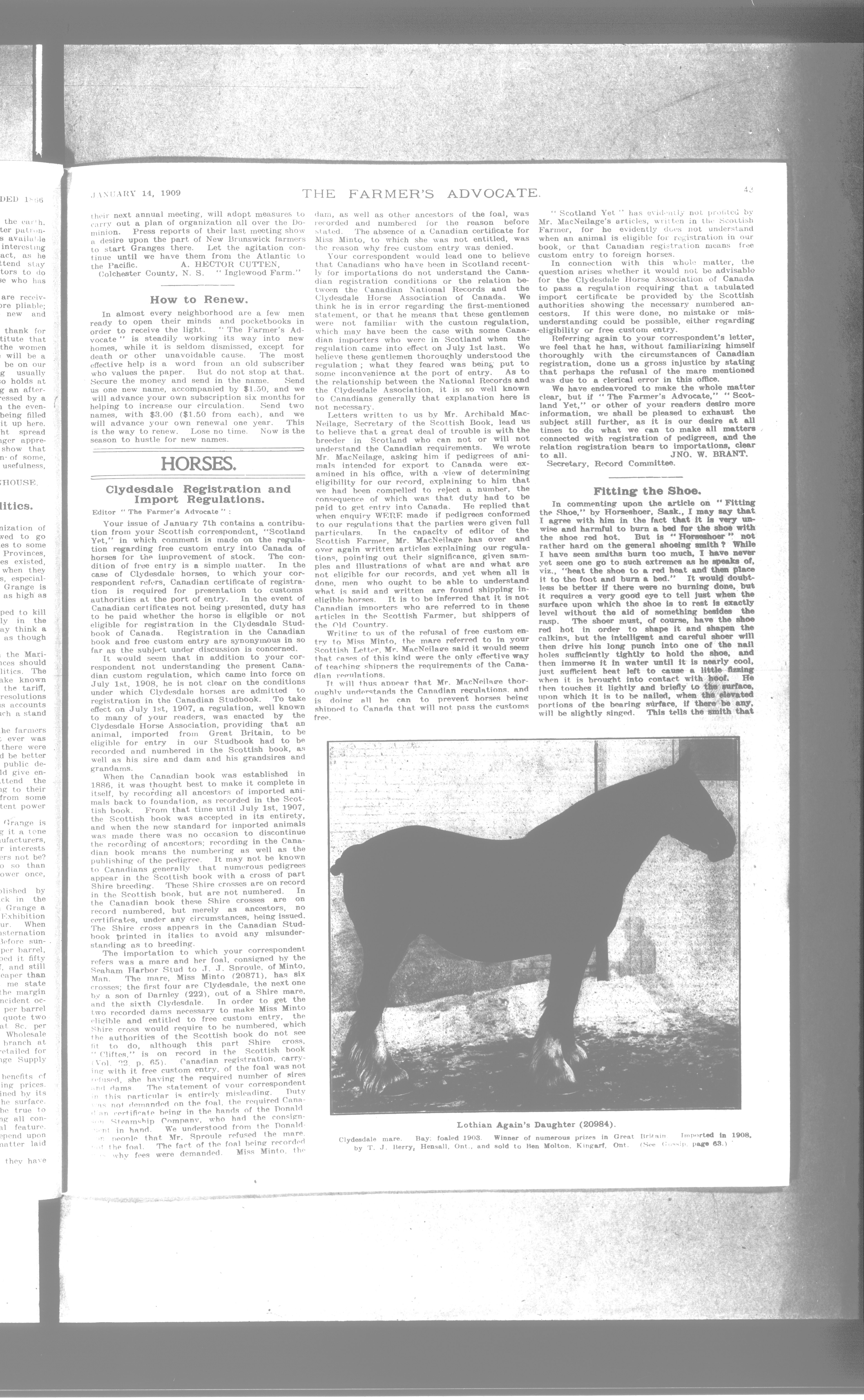 Farmer's Advocate and Home Magazine : Vol. XLIV, No. 851 (January 14, 1909)