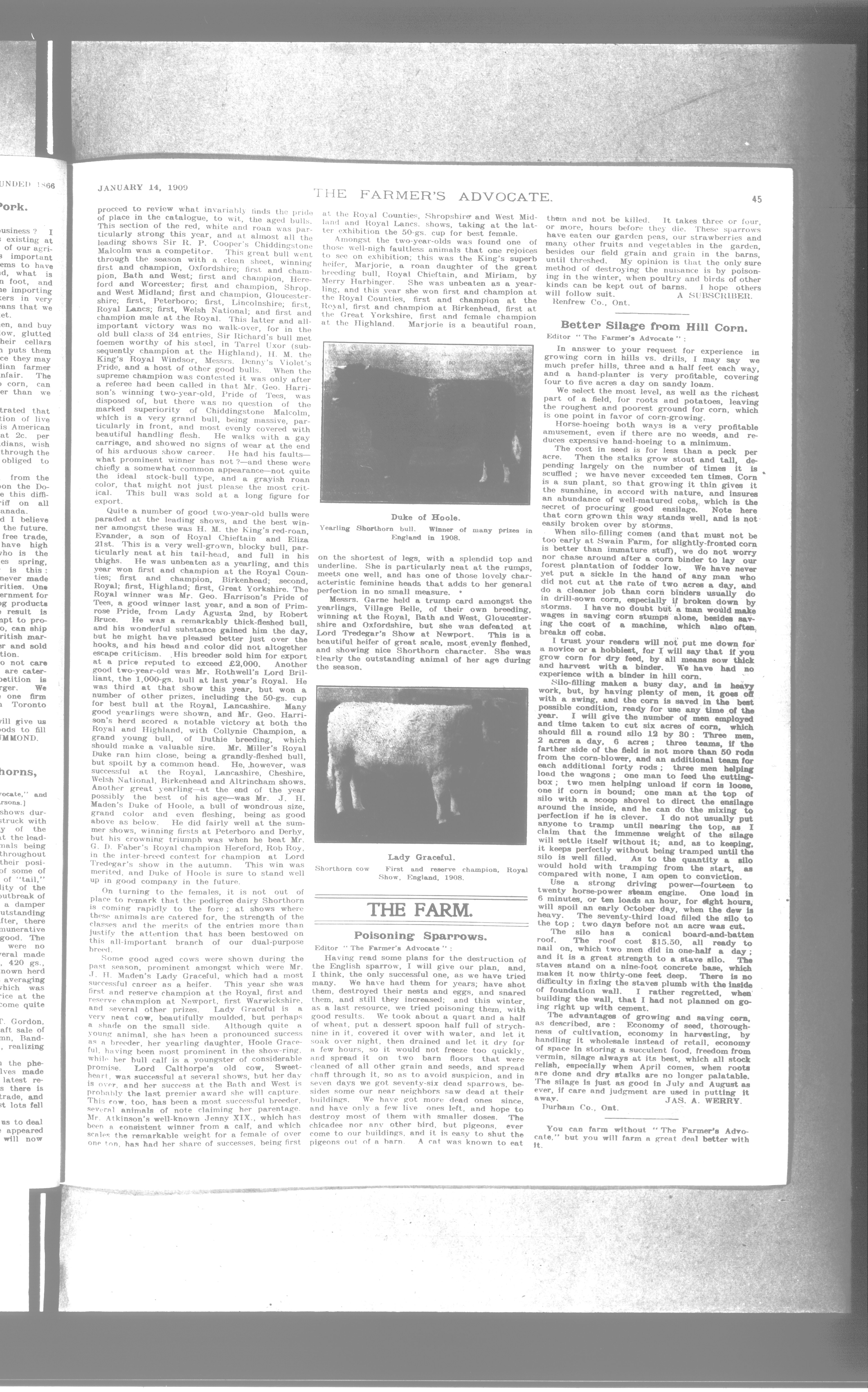 Farmer's Advocate and Home Magazine : Vol. XLIV, No. 851 (January 14, 1909)