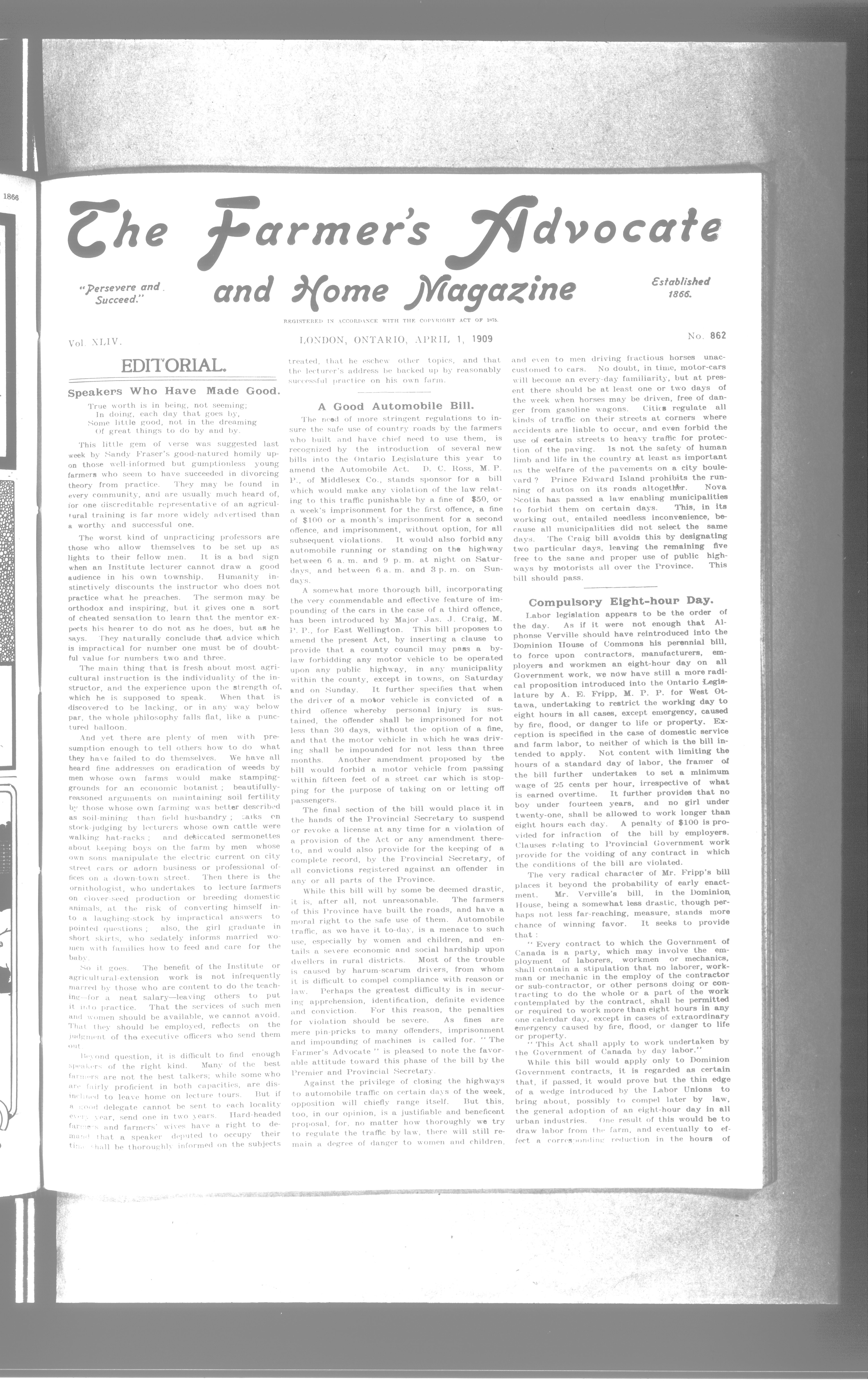 Farmer's Advocate and Home Magazine : Vol. XLIV, No. 862 (April 1, 1909)