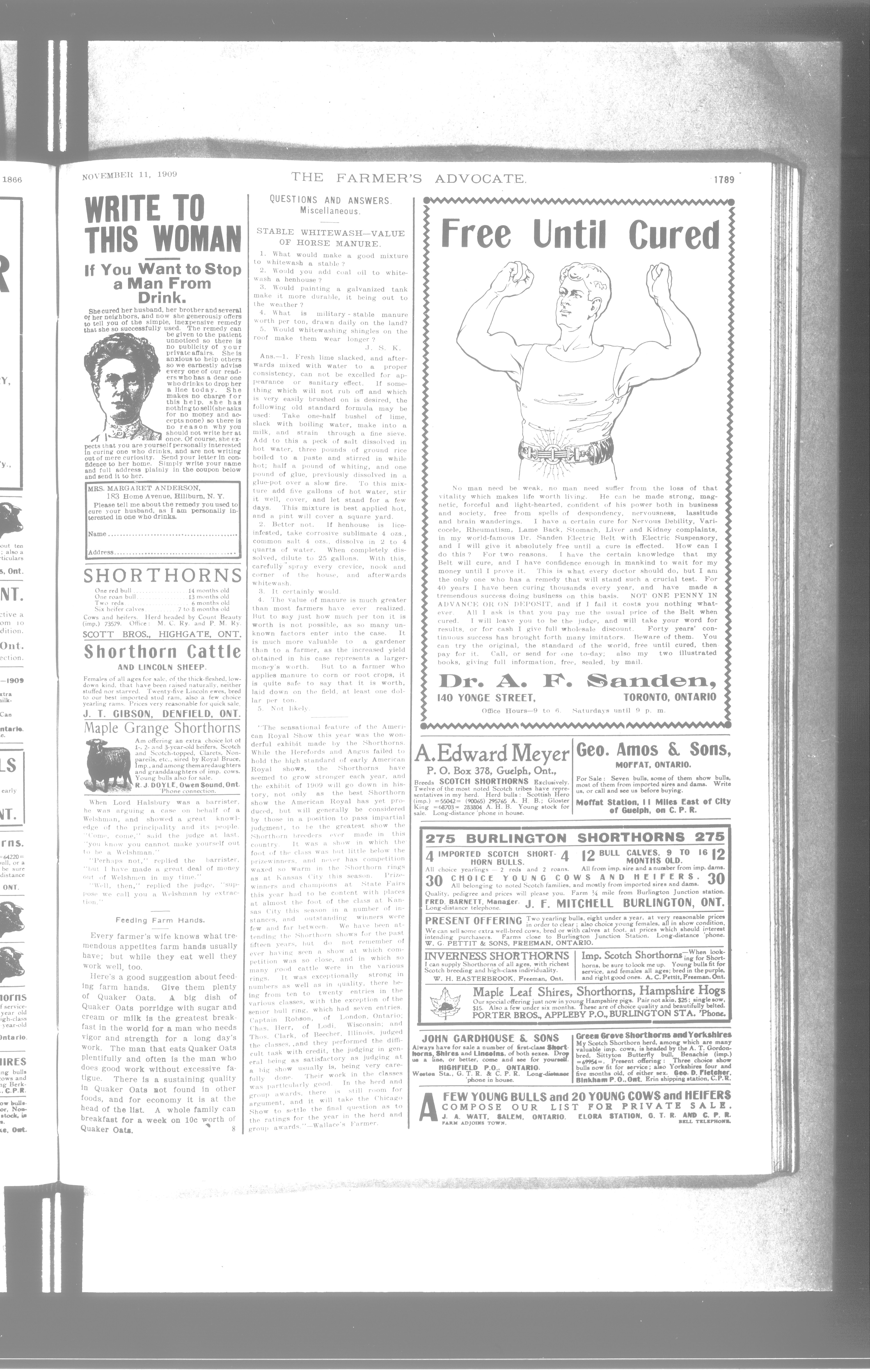 Farmer's Advocate and Home Magazine : Vol. XLIV, No. 894 (November 11, 1909)
