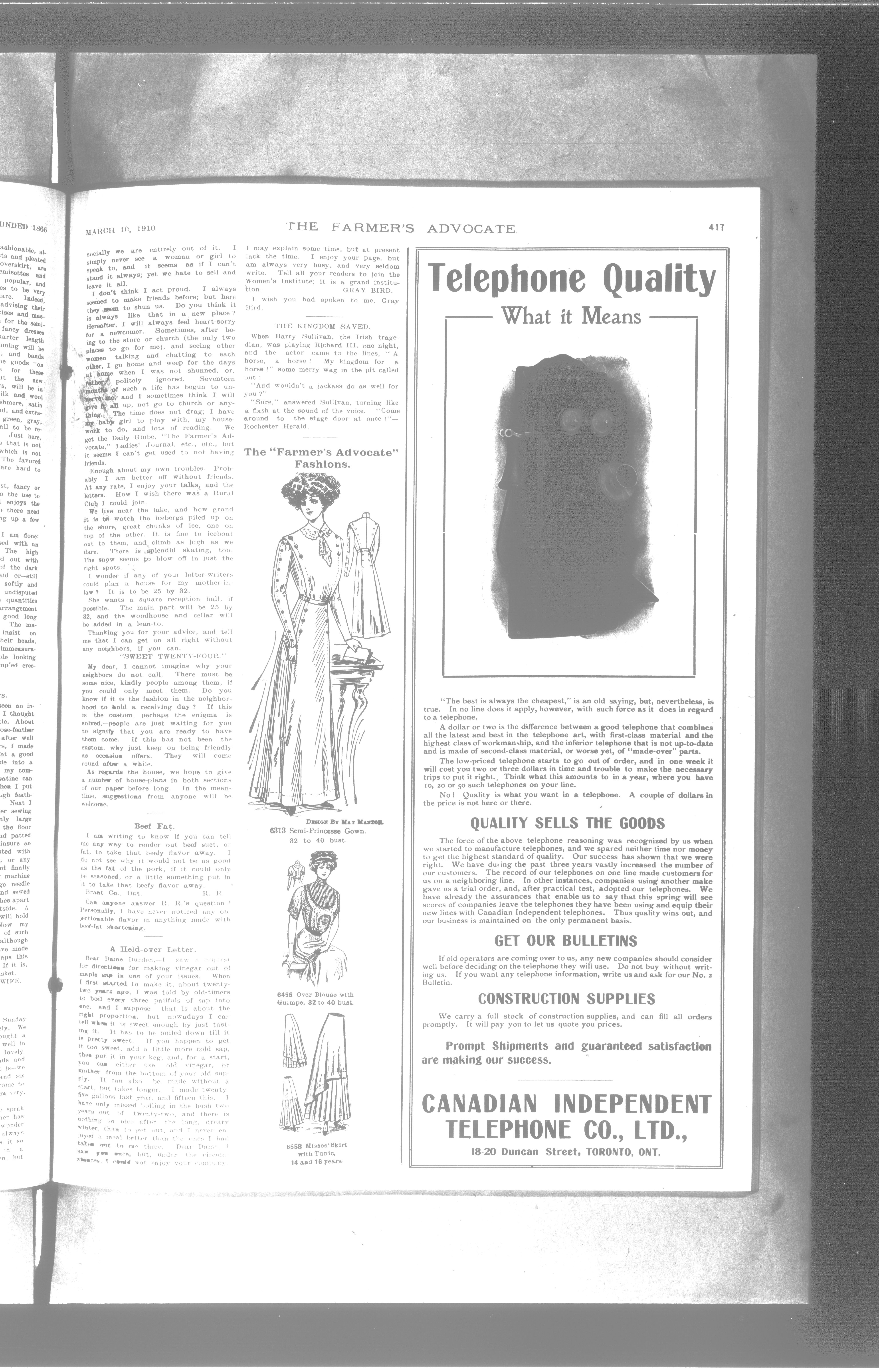 Farmer's Advocate and Home Magazine : Vol. XLV, No. 911 (March 10, 1910)