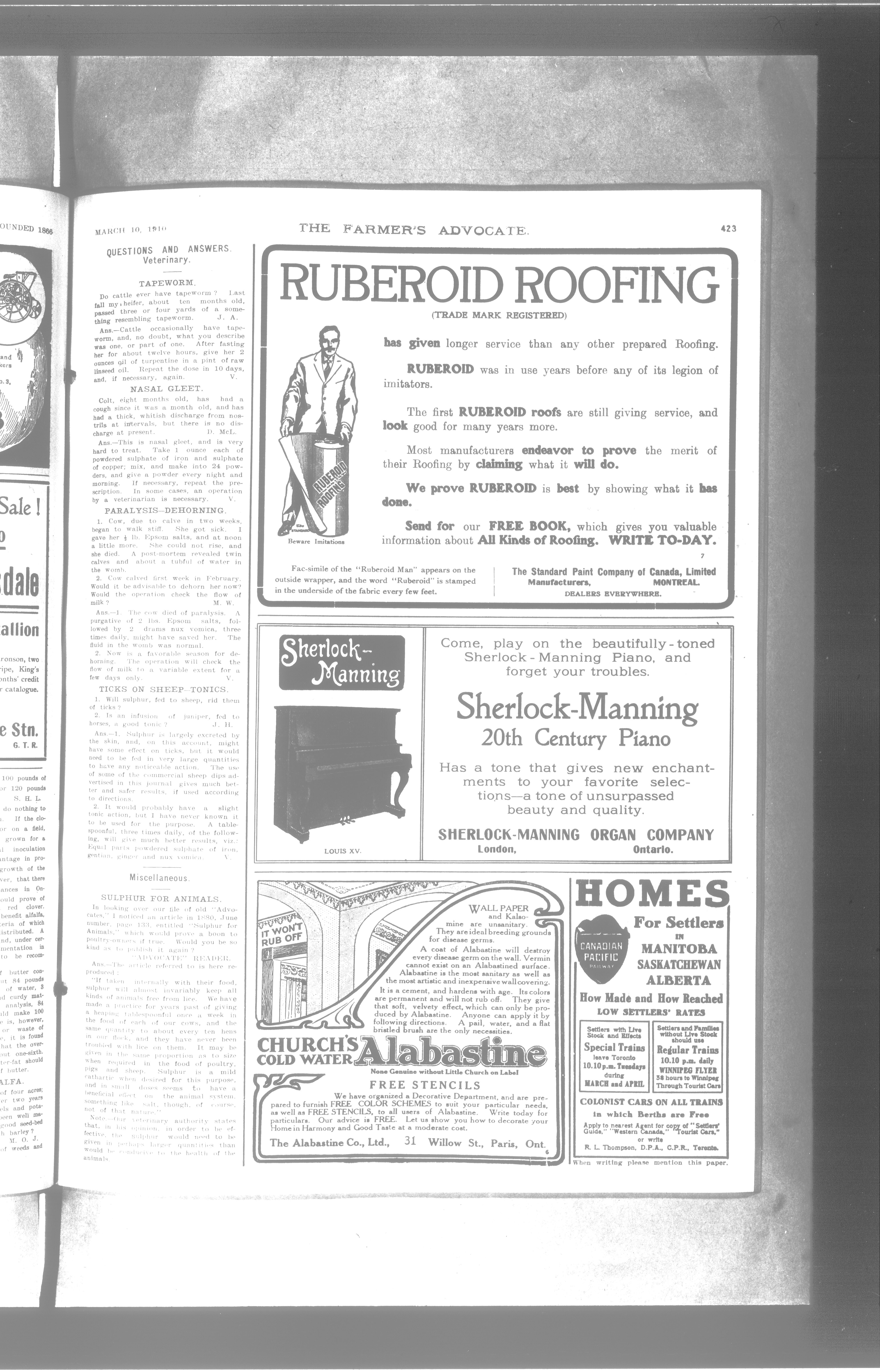 Farmer's Advocate and Home Magazine : Vol. XLV, No. 911 (March 10, 1910)