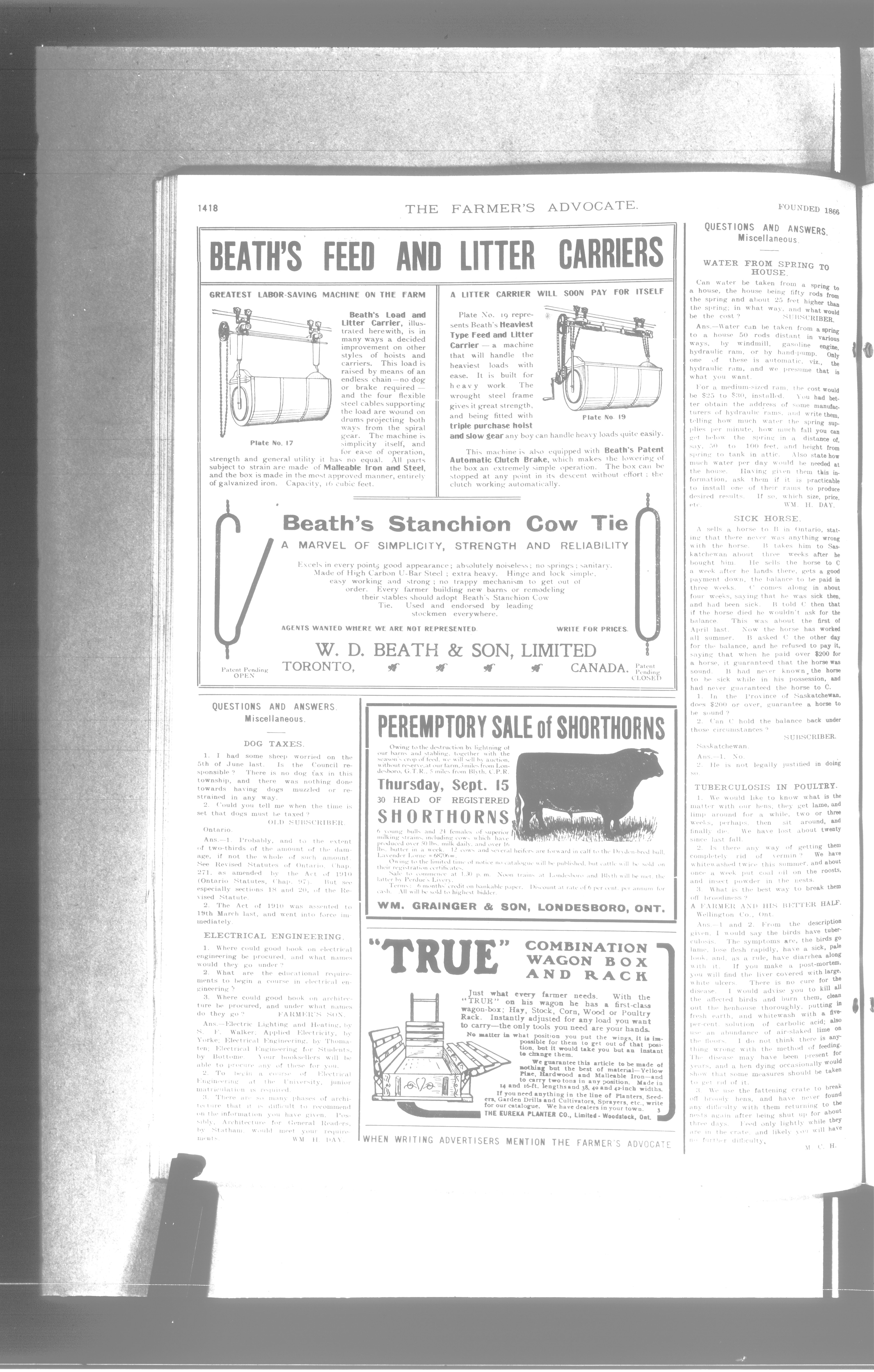 Farmer's Advocate and Home Magazine : Vol. XLV, No. 936 (September 1, 1910)