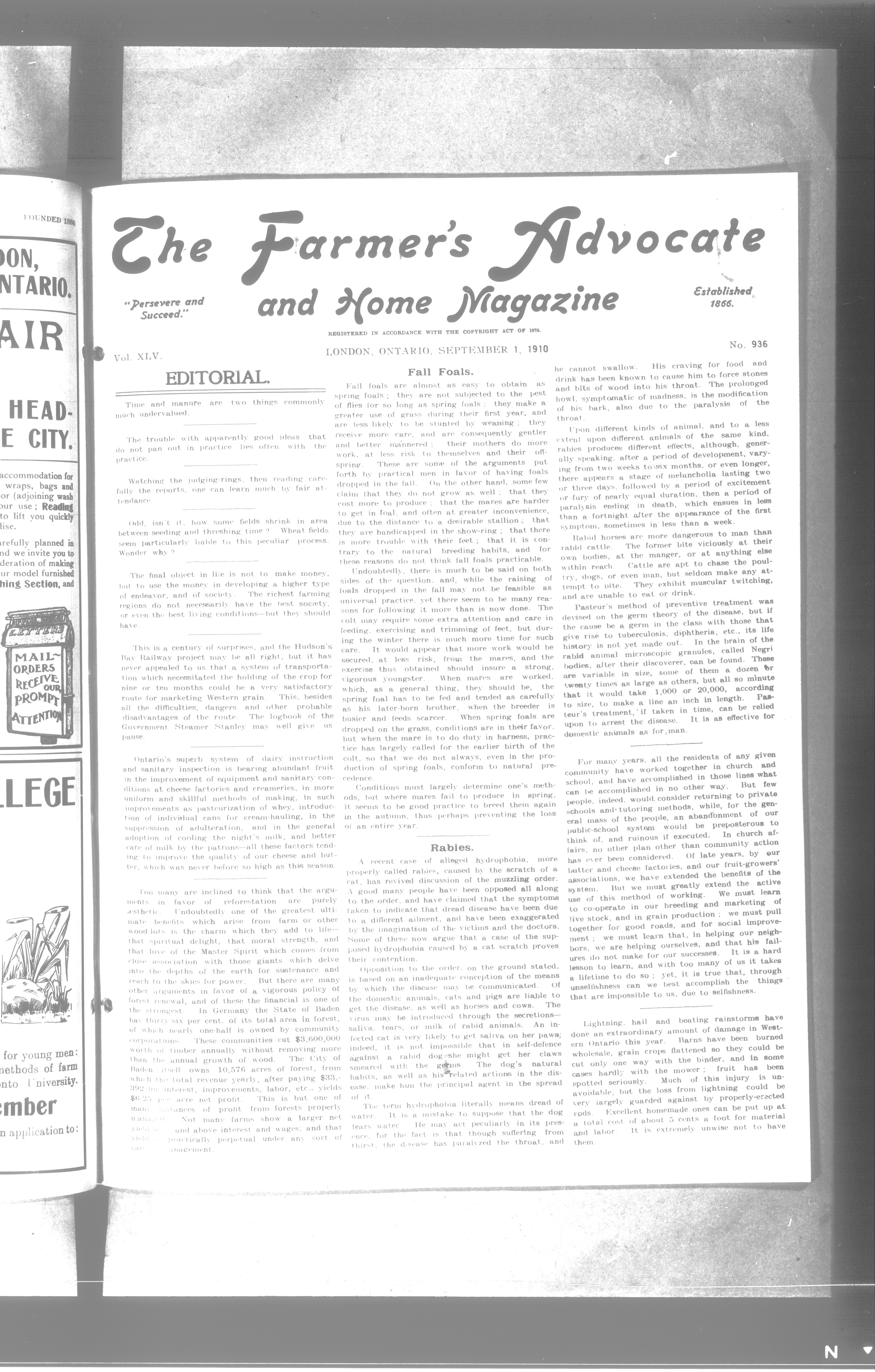 Farmer's Advocate and Home Magazine : Vol. XLV, No. 936 (September 1, 1910)