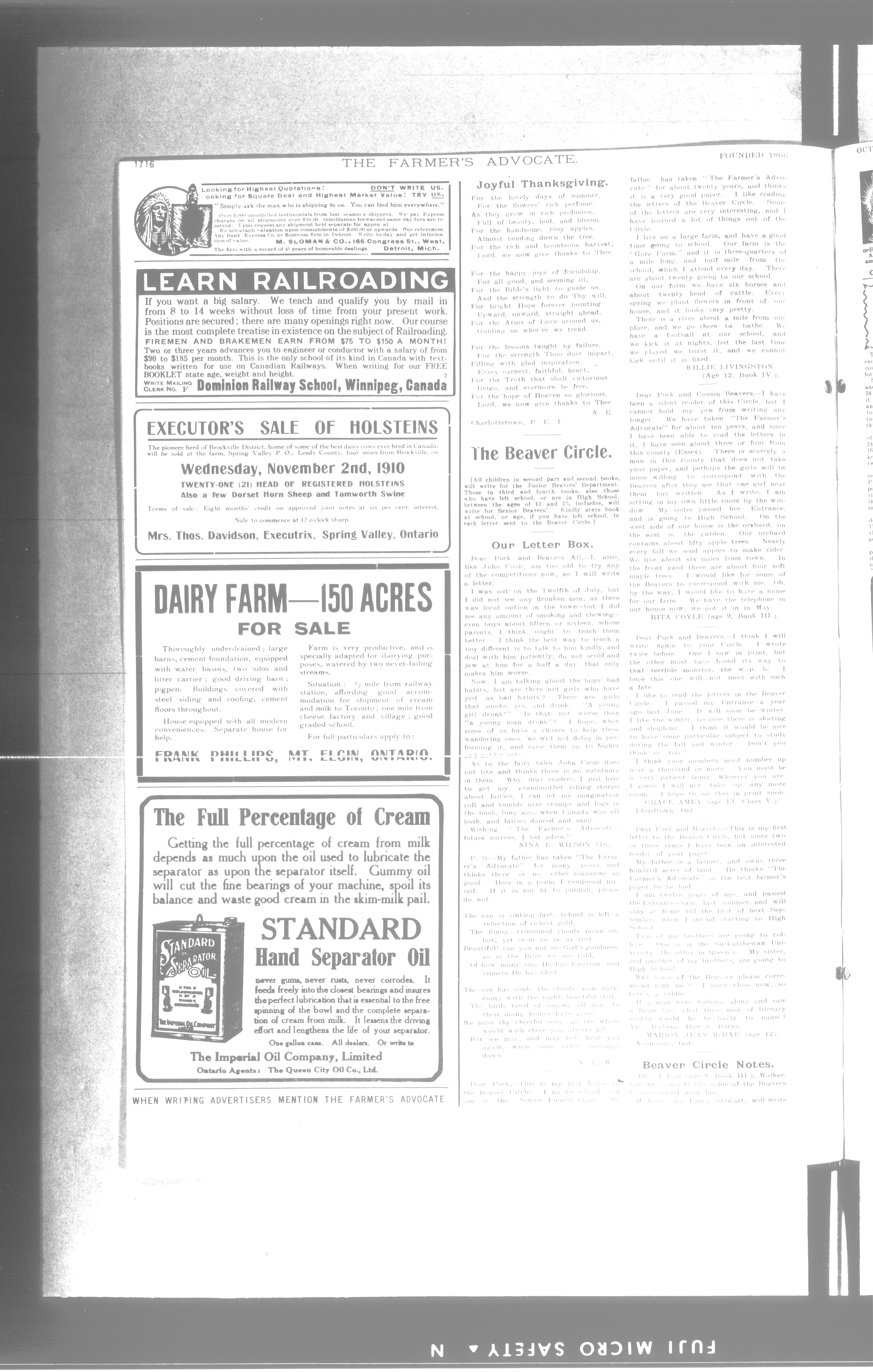 Farmer's Advocate and Home Magazine : Vol. XLV, No. 944 (October 27, 1910)