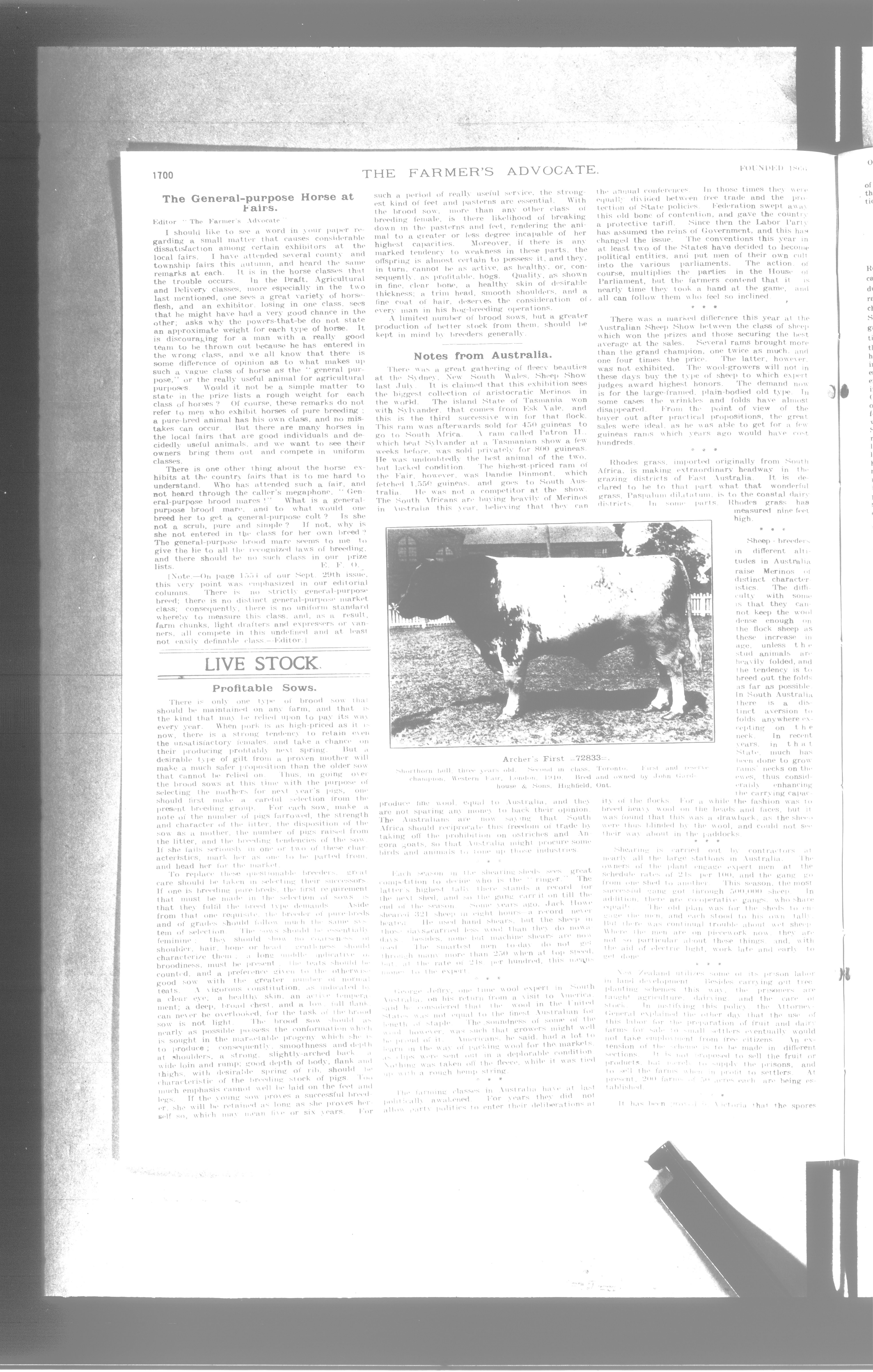 Farmer's Advocate and Home Magazine : Vol. XLV, No. 944 (October 27, 1910)