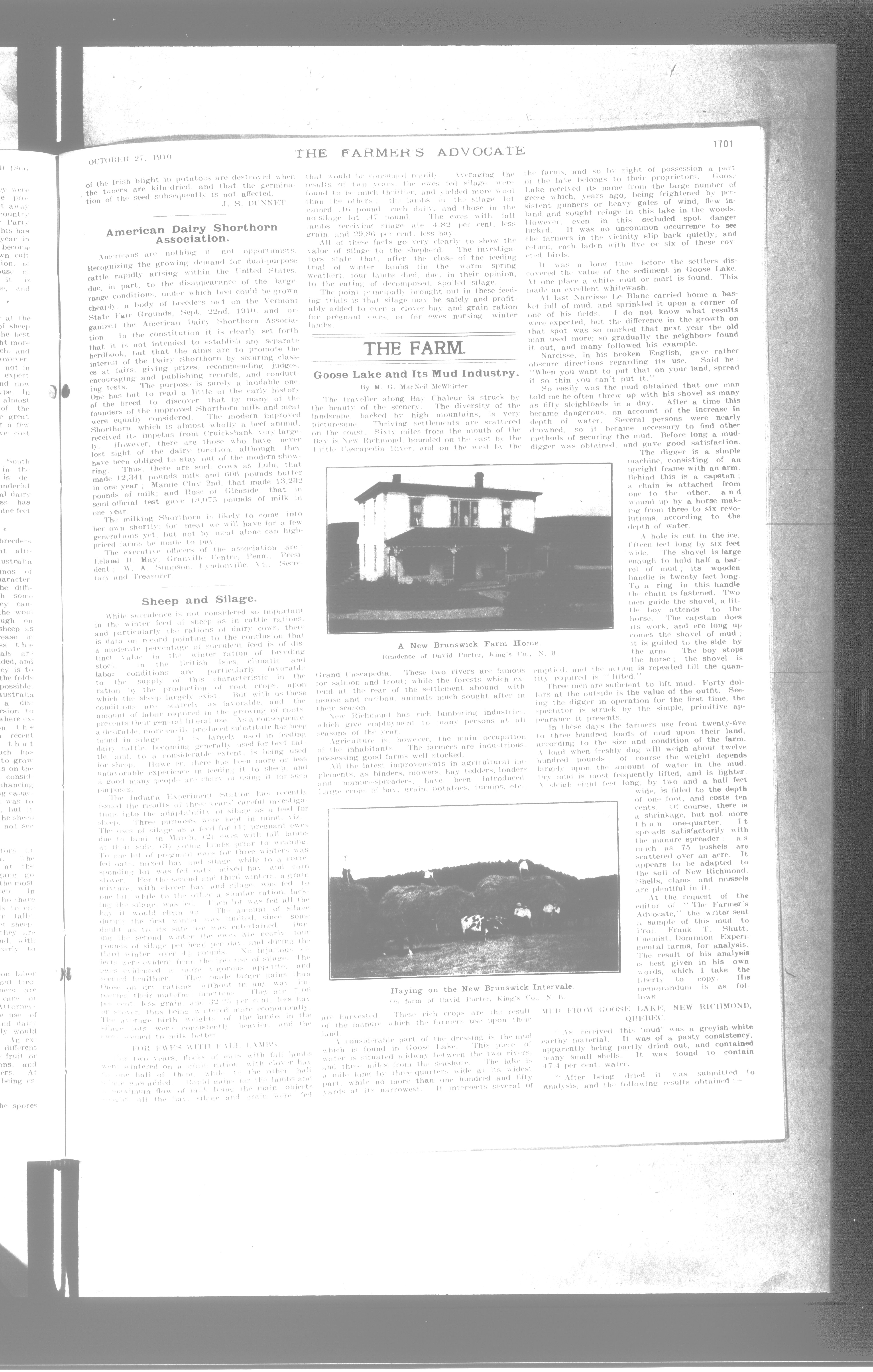 Farmer's Advocate and Home Magazine : Vol. XLV, No. 944 (October 27, 1910)
