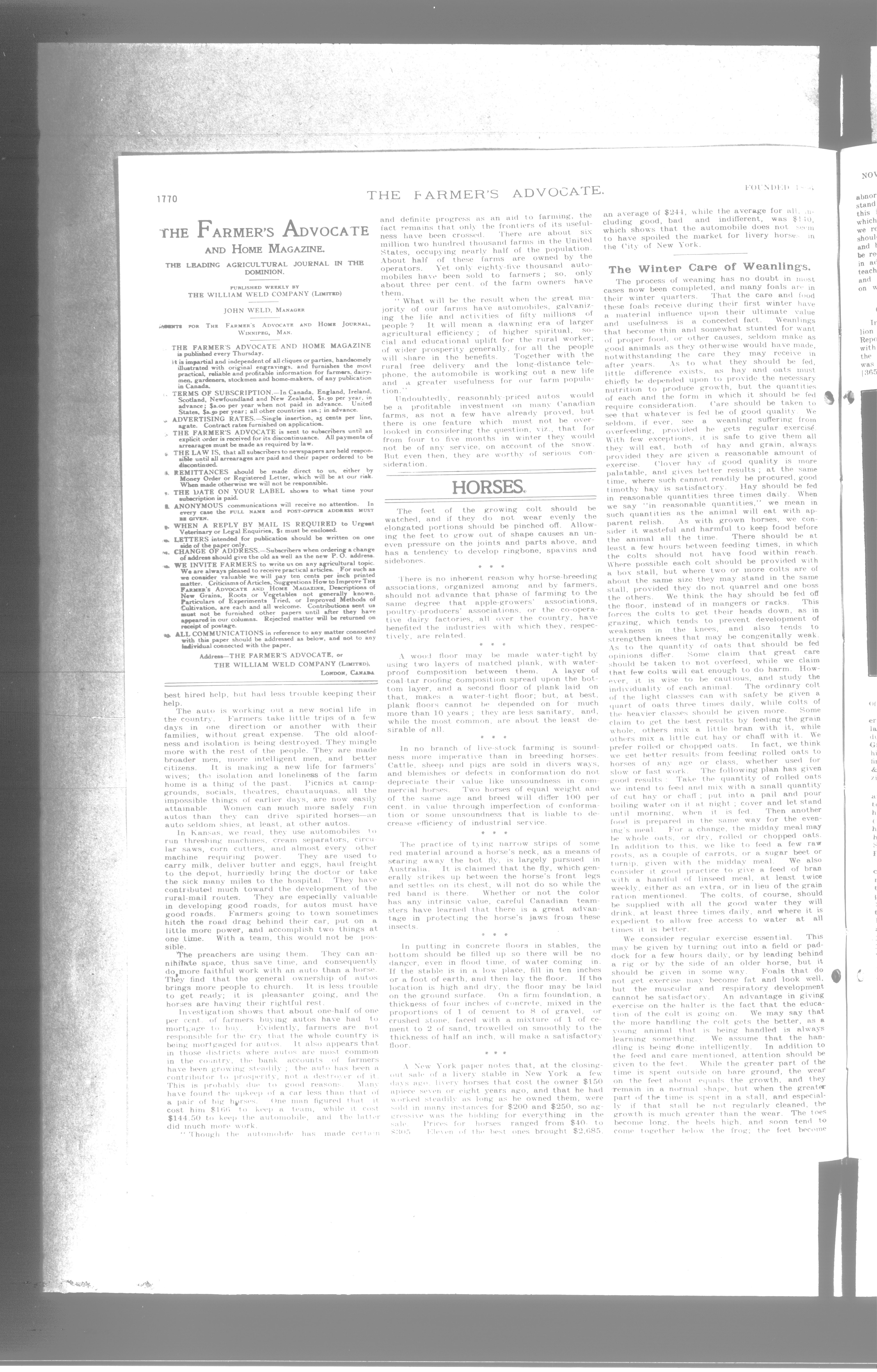 Farmer's Advocate and Home Magazine : Vol. XLV, No. 946 (November 10, 1910)