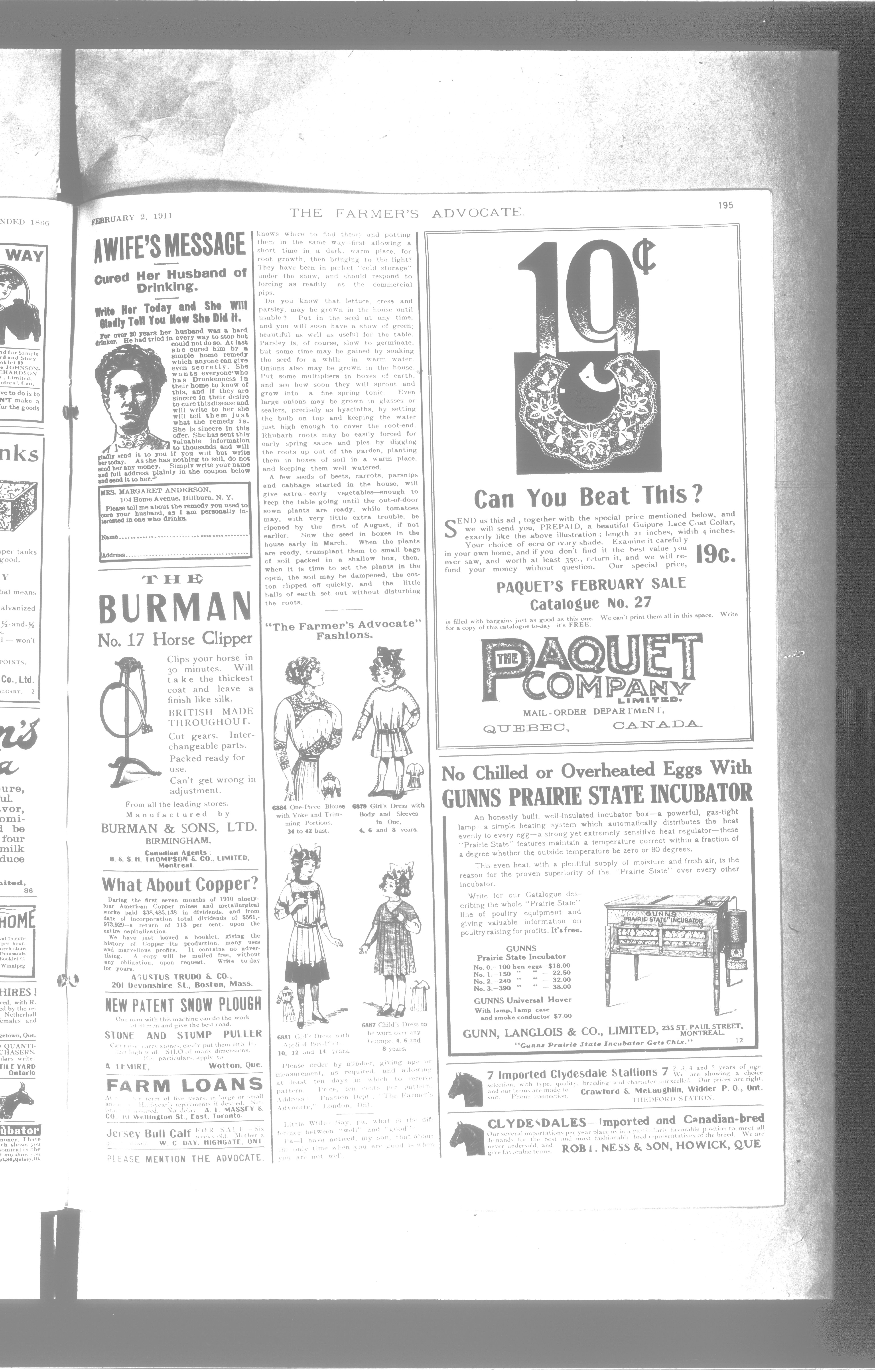Farmer's Advocate and Home Magazine : Vol. XLVI, No. 958 (February 2, 1911)
