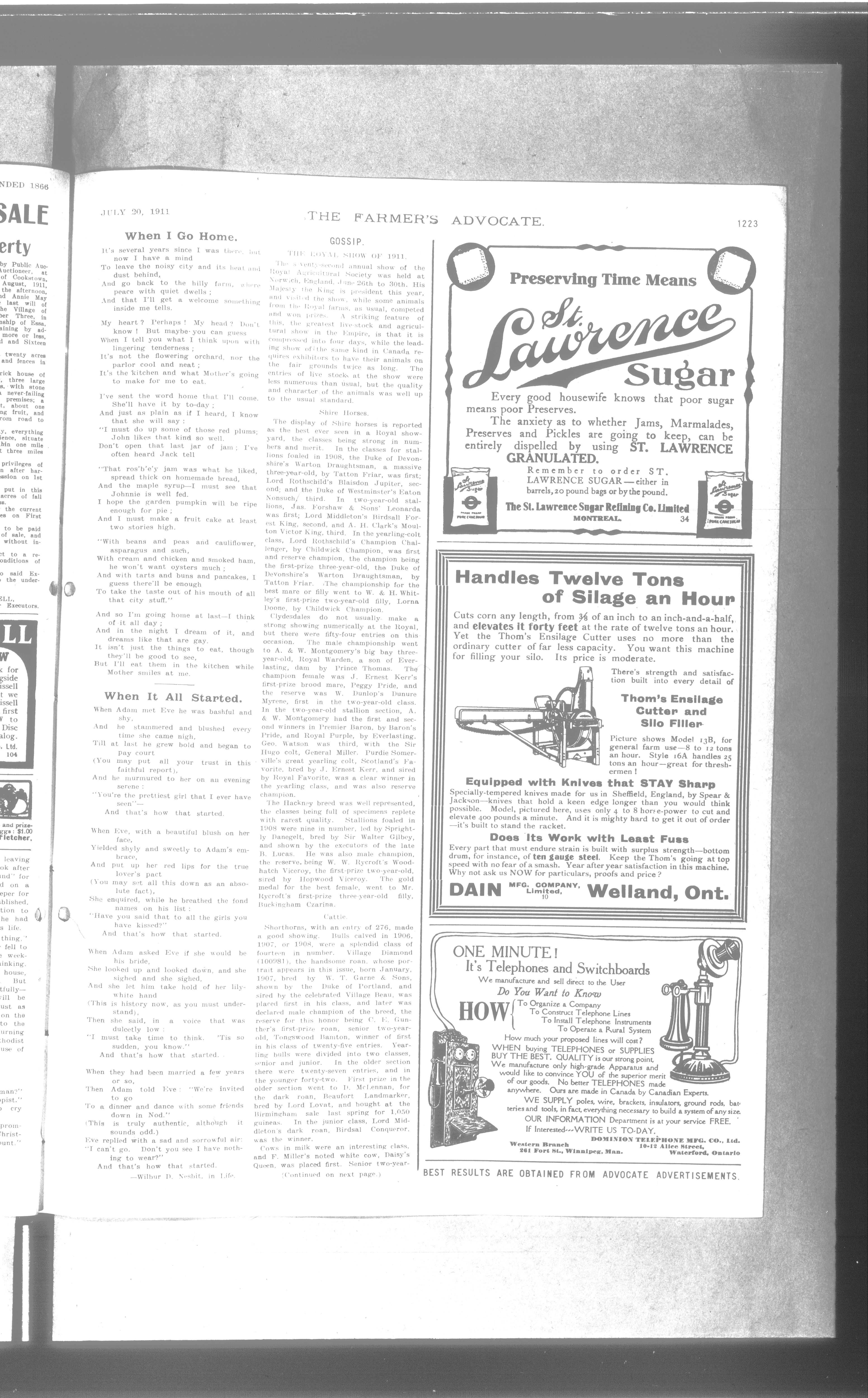 Farmer's Advocate and Home Magazine : Vol. XLVI, No. 982 (July 20, 1911)